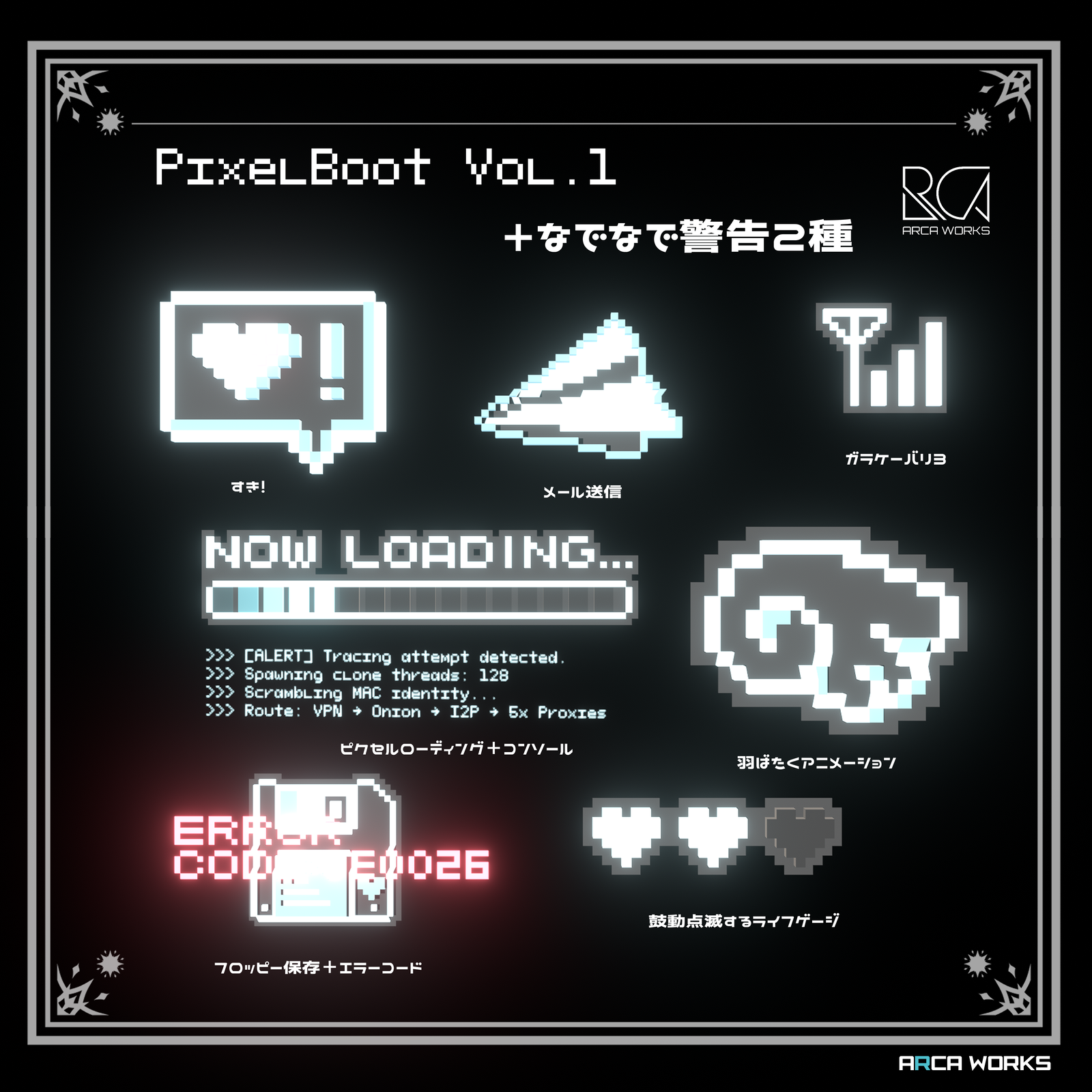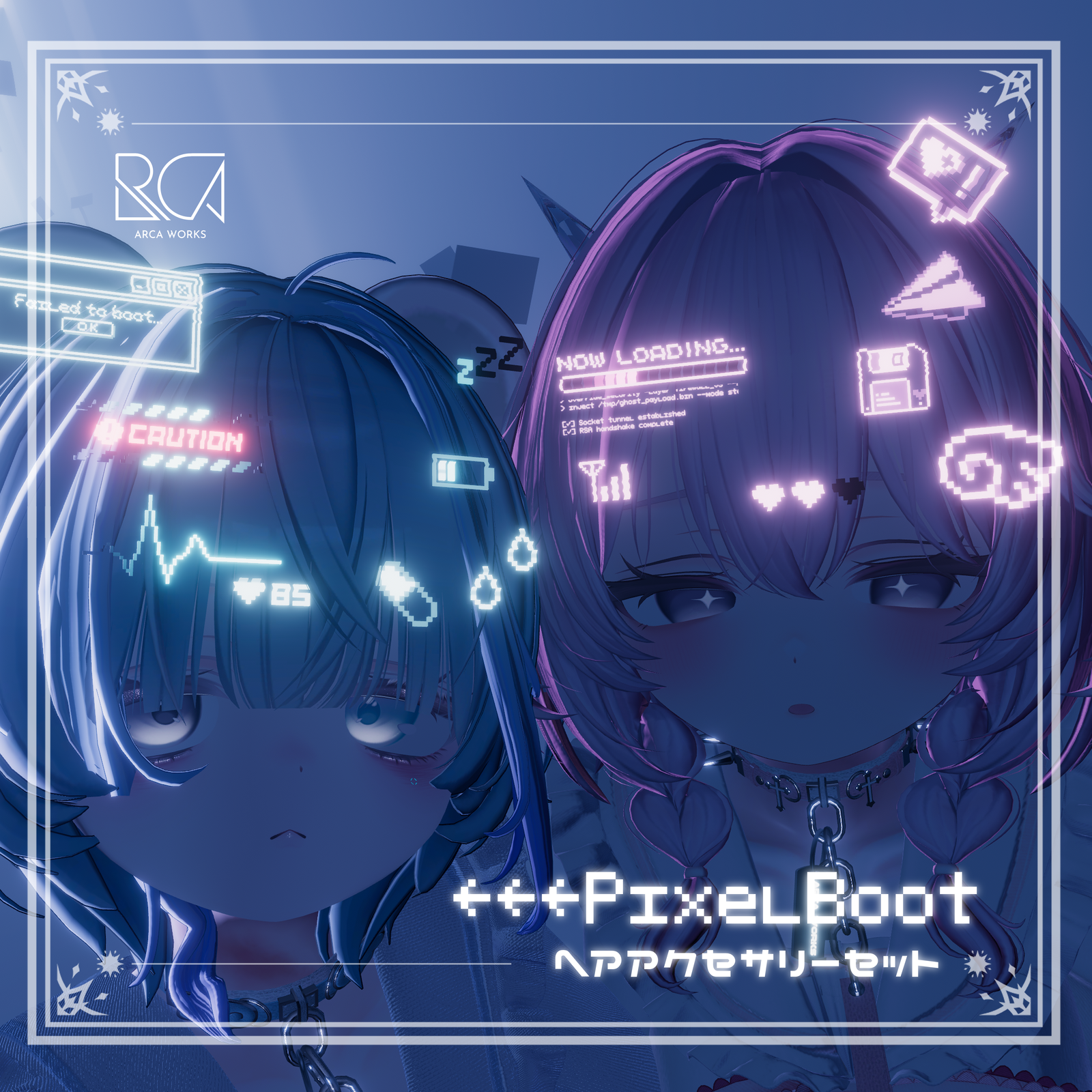 ④ In the imported folder (ARCA-WORKS > PixelBoot), place “(ALL)PixelBoot.prefab” directly under your avatar, then adjust the size and position of each hairpin