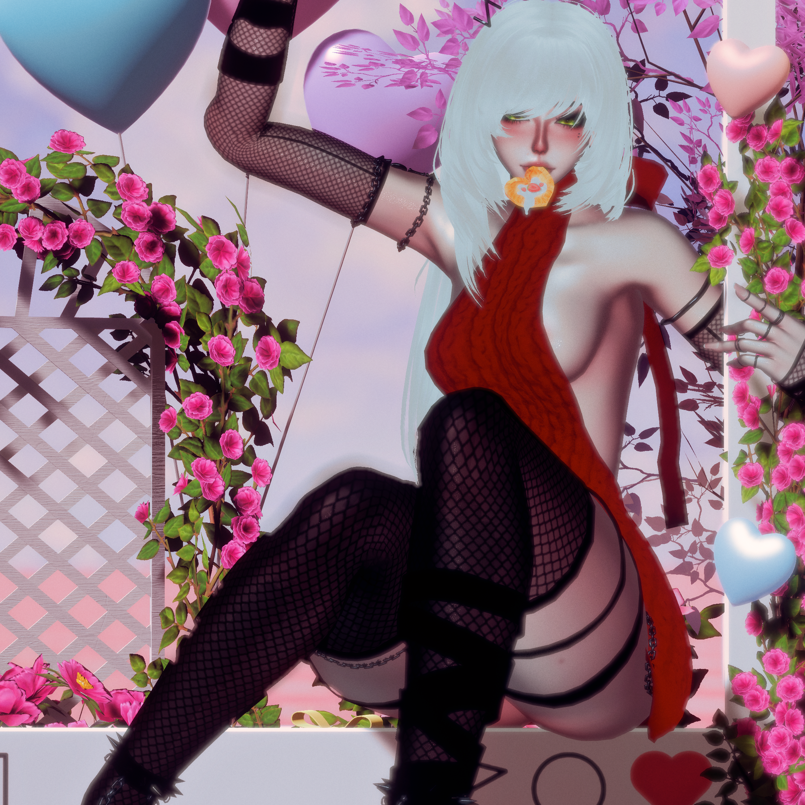 Acc: Fishnets, Glasses ,Puppy Text, Text Bubble,Heart Pastry, Spiked Face Band, Arm Wraps, Neck Chain, Dog Set, Leg Wrap, Bracelets, Thigh Fishnet Stockings. Arm Chains,Harness, ZZZ, Dog Mask