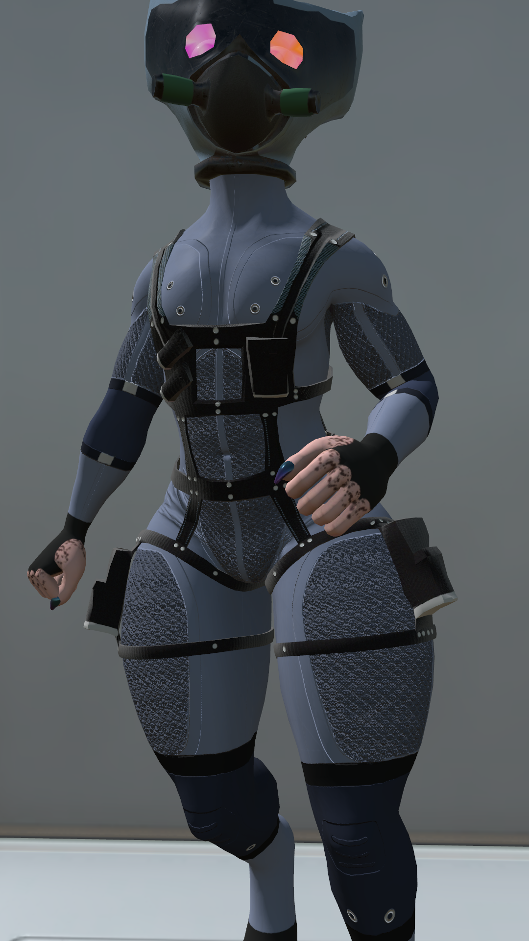 Strap in and prepare for your latest covert operation; This painted on bodysuit accents every curve the Fluffgan has to offer. Blending sleek utility and an unmistakable energy; This hallway prowler is ready to leave nothing but an impression in it's wake and a few unconscious bodies in it's path, Otocon not included.