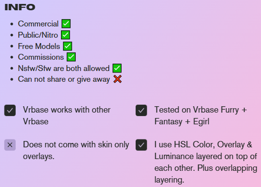Supported bases: Cici | Starlight | Kiyomi | Vrbase Furry | Akii | Mink | Amelia