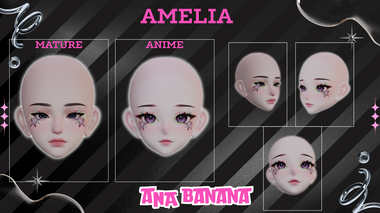 • 10 pngs are for Cici | 10 pngs are for Starlight | 10 pngs are for Kiyomi | 10 pngs are for Vrbase Furry | 10 pngs are for Akii | 10 pngs are for 23Minks Male Head | 10 pngs are for Amelia Head Mature & Anime