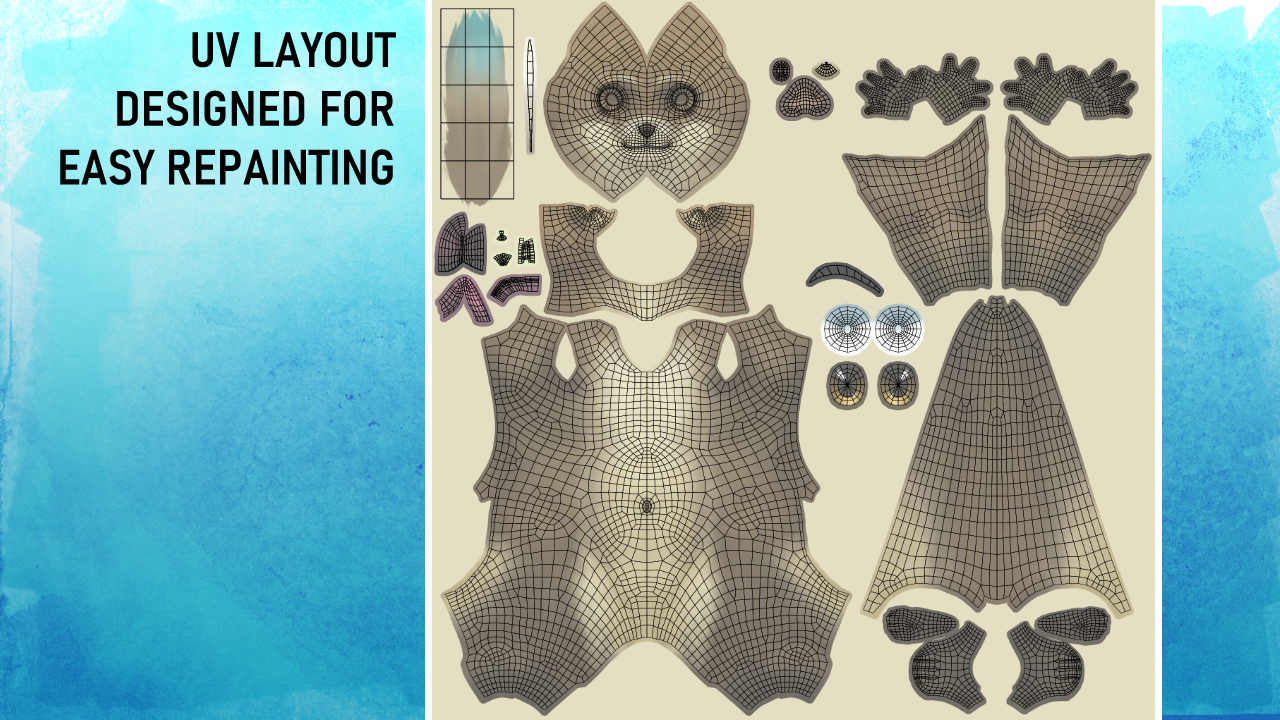 - -Clean UV layout designed for easy symmetry (or asymmetry!)