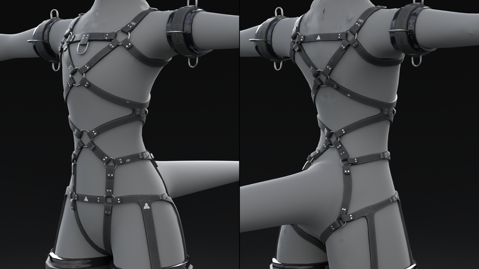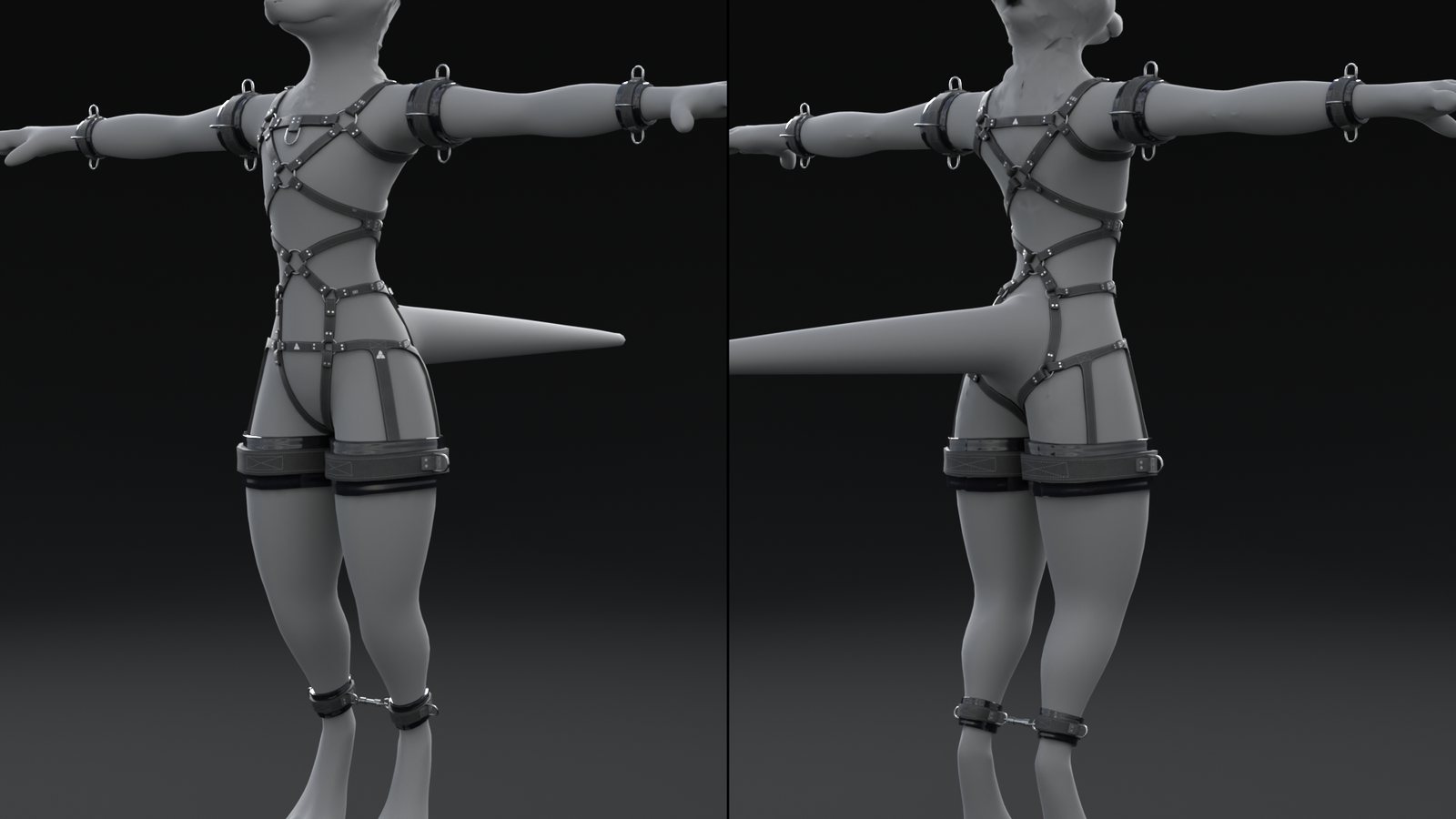 Includes Harness, Cuffs, spreadbar and tons of blendshapes for customization!