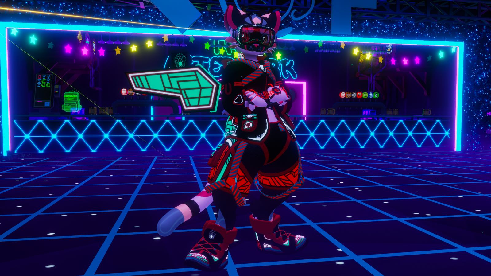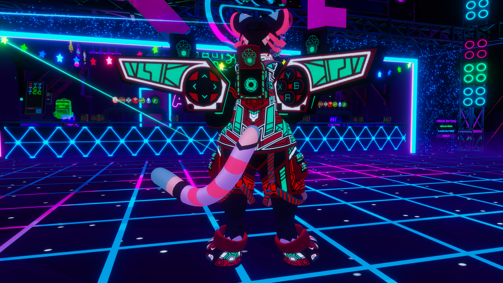 Up your game with this next level Arcade outfit to show off your inner gamer! This asset comes with 6 meshes and has vrc built in to add this asset to your avi and upload within minutes! Toggle on the wings and headset power with custom visual and sound effects and watch it all bootup to life! Asset also comes with audiolink for all you crazy cats what love to party!