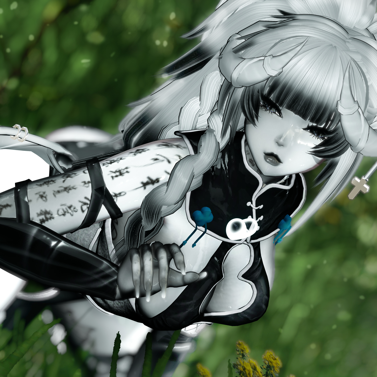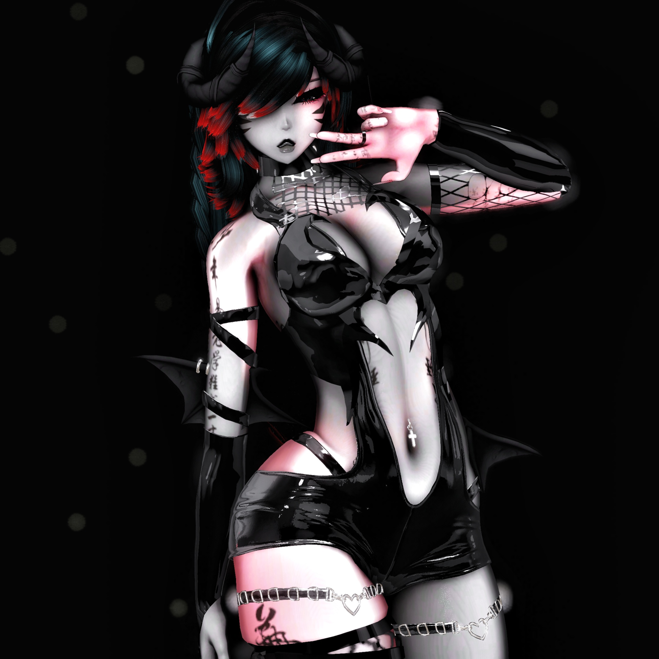 FACE: Face Glitter, Face Glitter Sat, Face Glitter Hue, Black Lip, White Lashes, Makeup, Face Stripe
