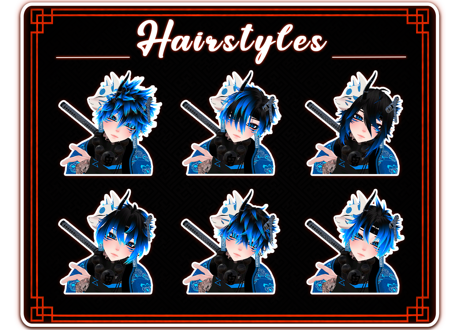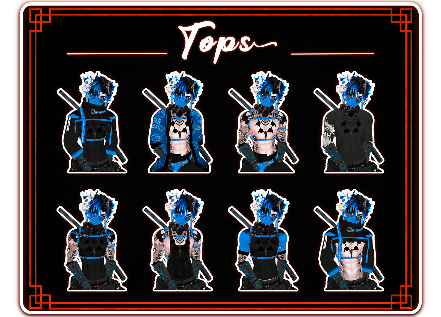 - Straw Hat, Horns, Necklace, Gloves, Gauntlets, Earrings, Shuriken Earrings, Glasses, HeadBand, Mask, KitsuneMask