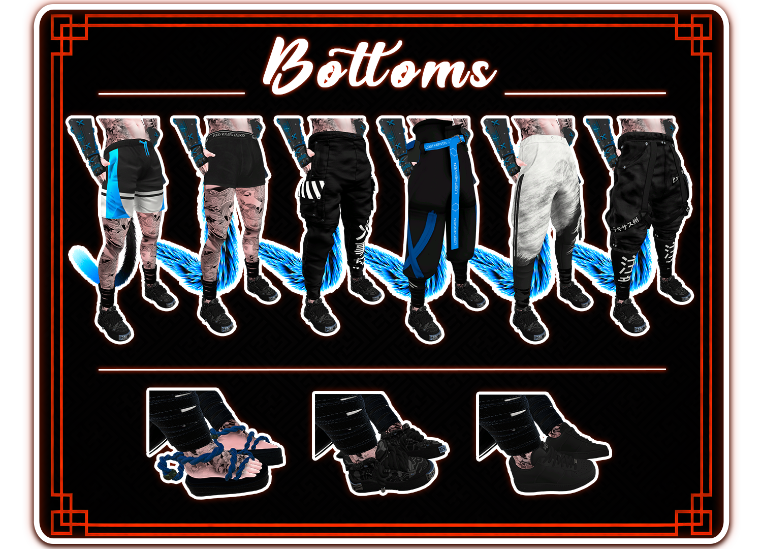 - Boxers, Cargos, Japan Pants, Pants, Sweats, Trunks, Bandages