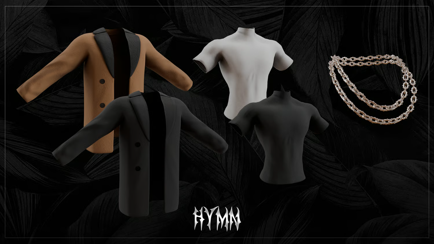 - 3 Materials (Coat, Turtle Neck, Chain)