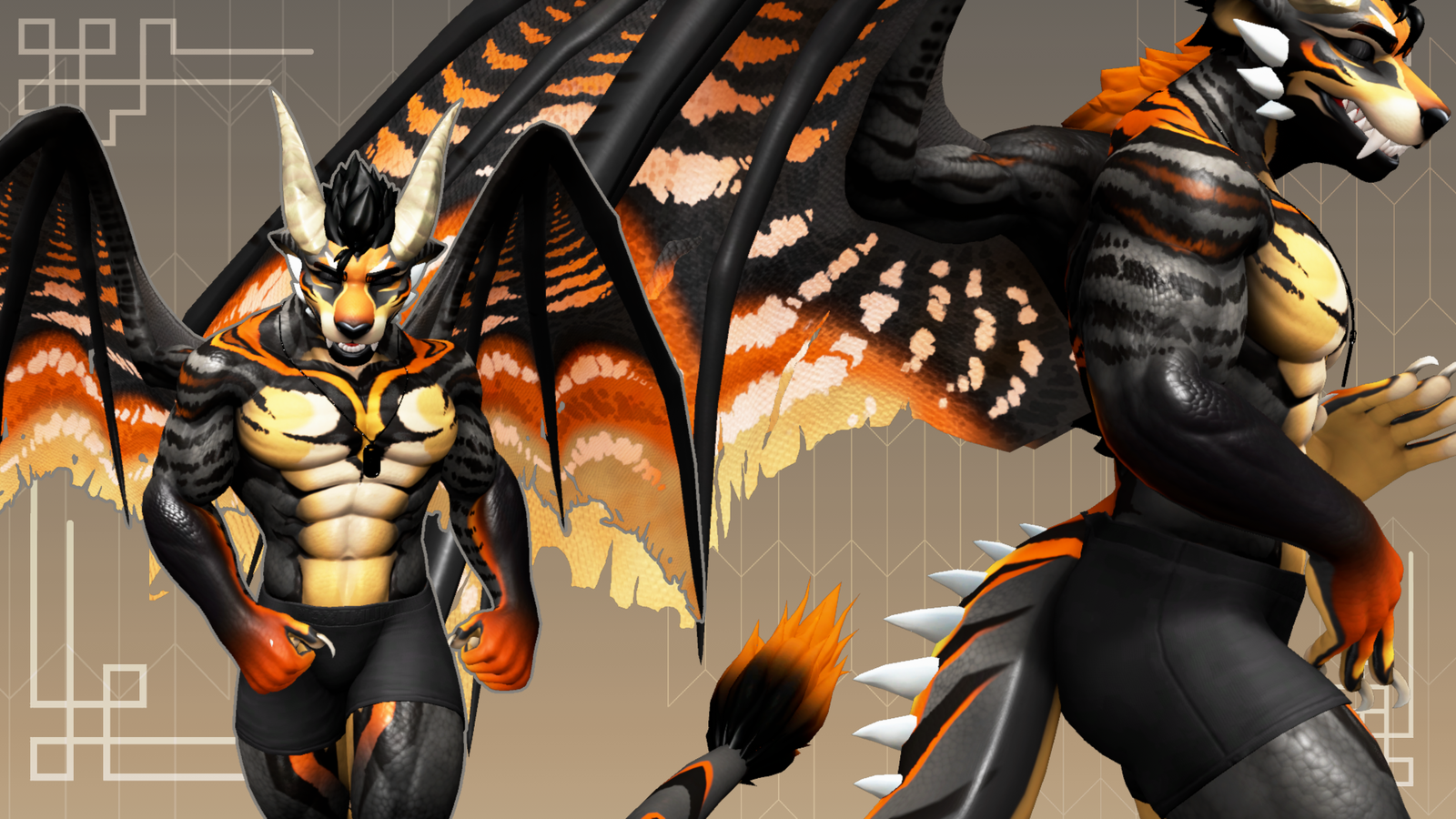 - Textures include: Aquatic base color, body base color, custom body and wing emissions, bone base color, eye base color, hair base color, wing base color, wing normal for custom scales, wing alpha for torn wings and wing roughness.