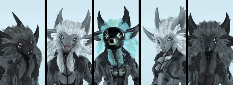 The Lei'hra is an avatar that will leave those around you bewildered by its exotic and intimidating beauty. Stare down your prey with the gaze of 4 eyes and show them that you mean business. The Lei'hra will exert your personality and will as long as you are willing to also embody it as well, truly step into the role of a space-faring fluffy raptor and walk around like you own the place, because you do!