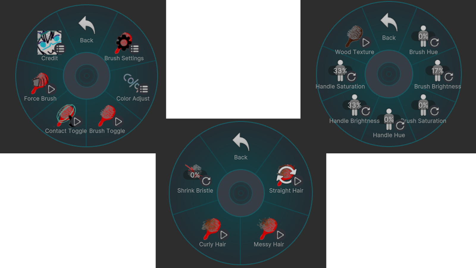 - Color adjust settings (Hue, brightness, and saturation of both bristle and handle)