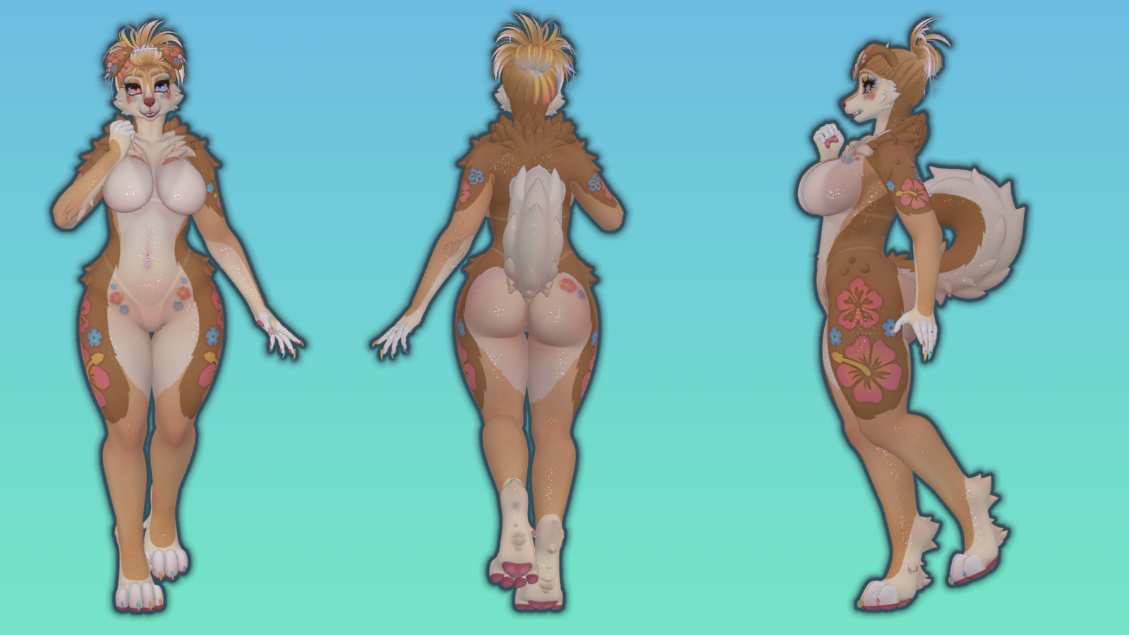 Example Base textures are HERE - https://kitastextureden.gumroad.com/l/tropicalgyaru - https://jinxxy.com/Kitasekki/tropicalgyaru and HERE! - https://jinxxy.com/Magical_Maniac/TsuyomeRoxy