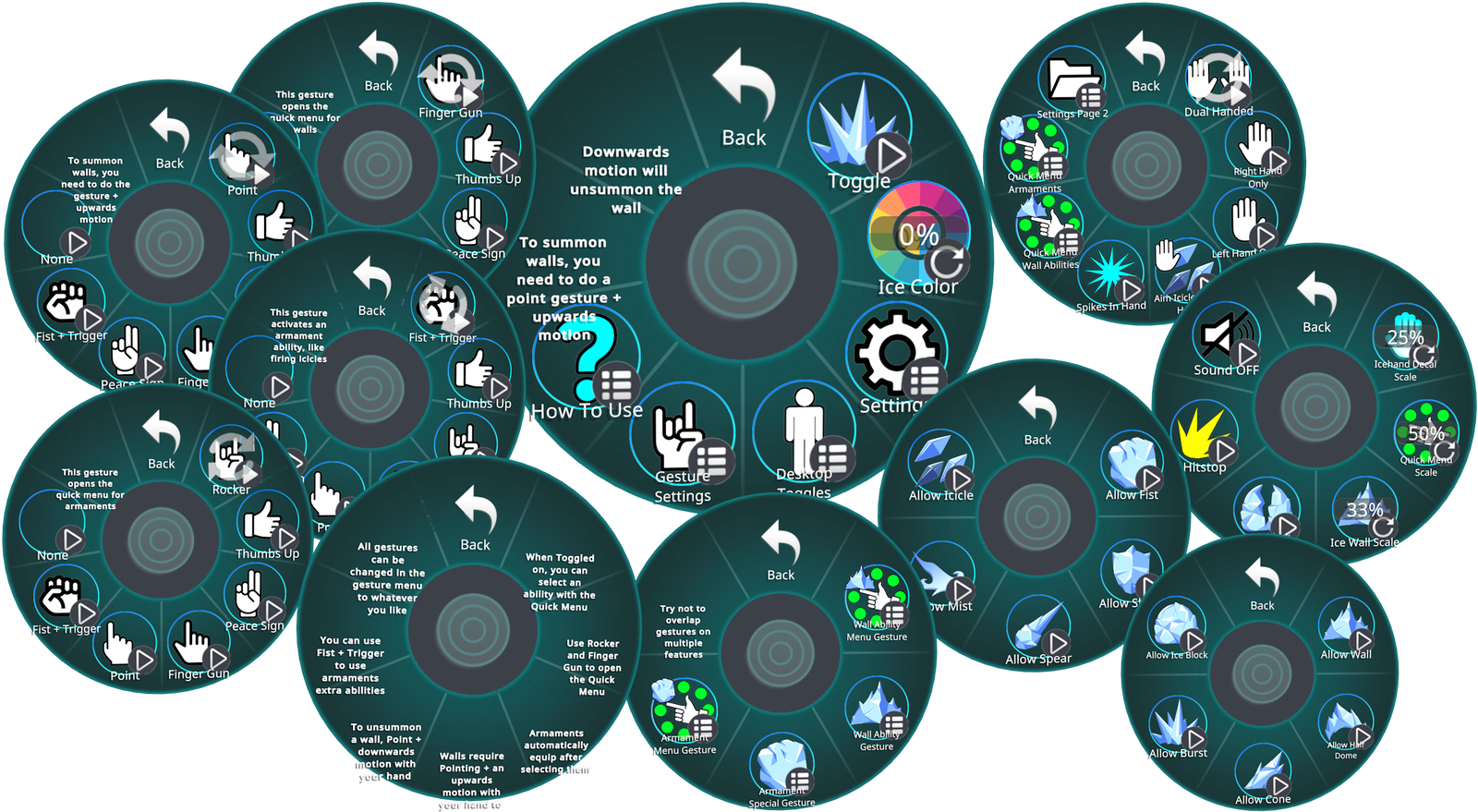 - All gesture controls can be changed in the menu to whatever gestures you prefer.