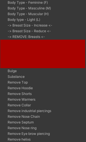 the menu includes toggle for each separate clothing peace