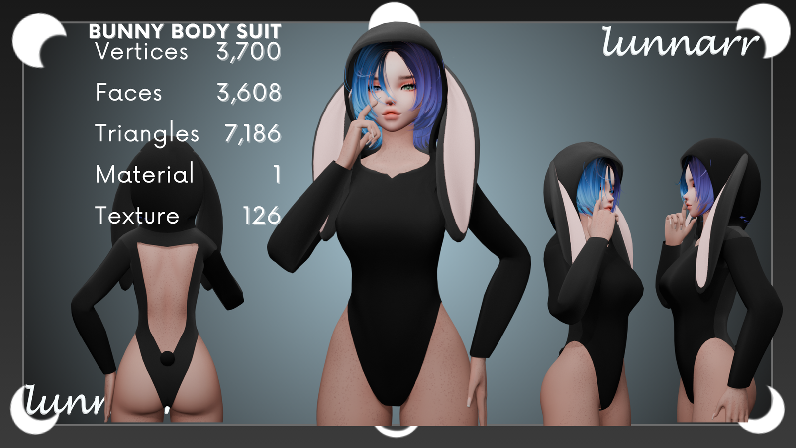 ~(Bunny Body Suit)Verts:3,700 / Faces:3,608 / Tris:7,186