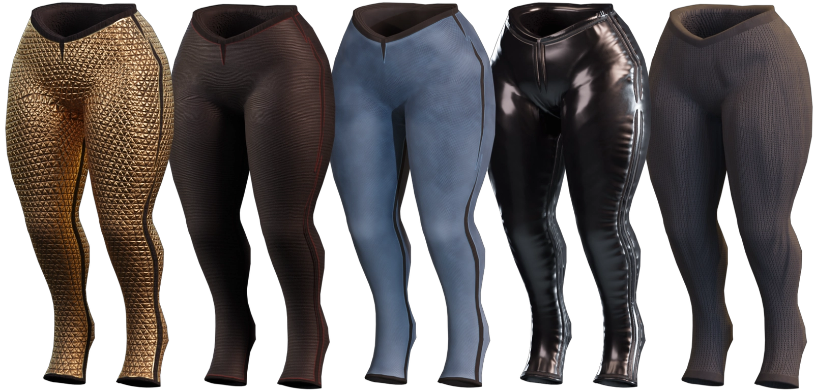 There are 15 materials to choose from, 5 materials per piece of clothing ready to use in a Unity package.