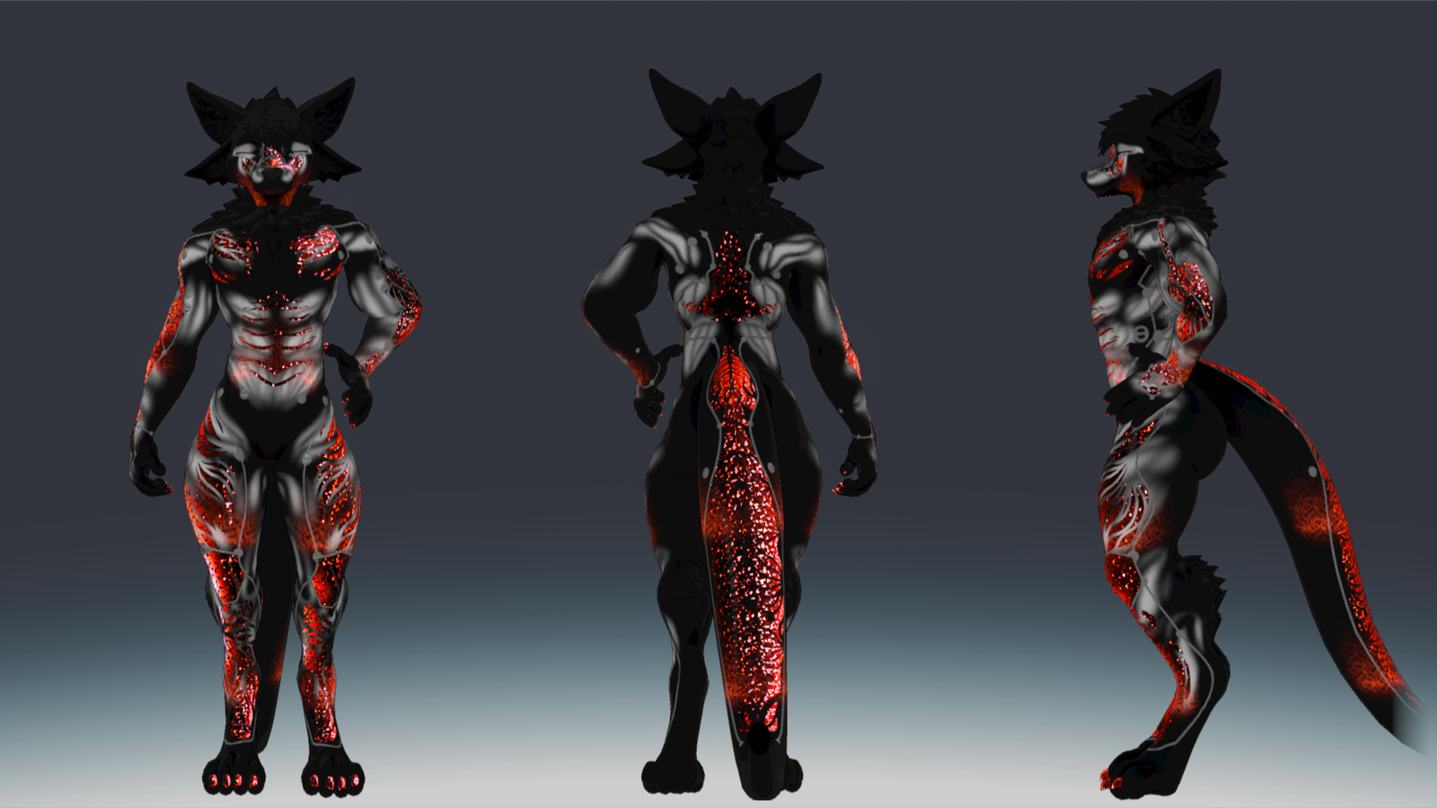 Comes with glowing effect, scroll emission, no eye textures, body textures, poi-material, all the red can simple be changed to any color it is a matcap layer same goes for the scroll that is a emission