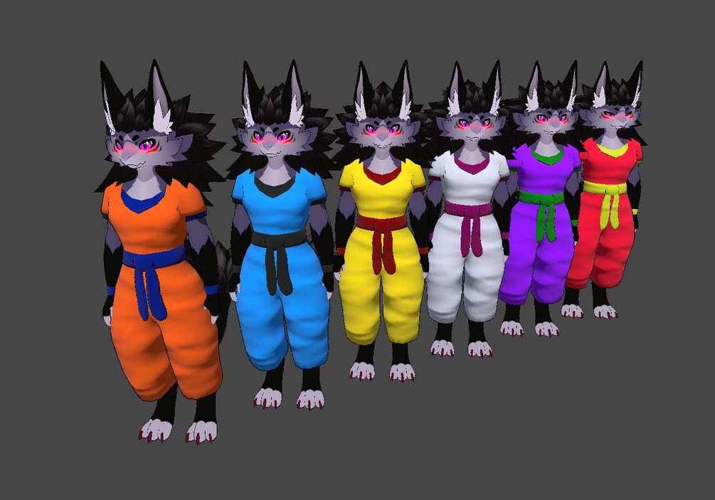 Bring power and style to your NovaBeast avatar with this martial arts-inspired outfit! This gi-style set includes loose training pants, a tied sash belt, and a fitted short-sleeve top with clean accent details. Optimized for VRChat, this outfit is lightweight, versatile, and comes with six striking color variants to match your vibe.