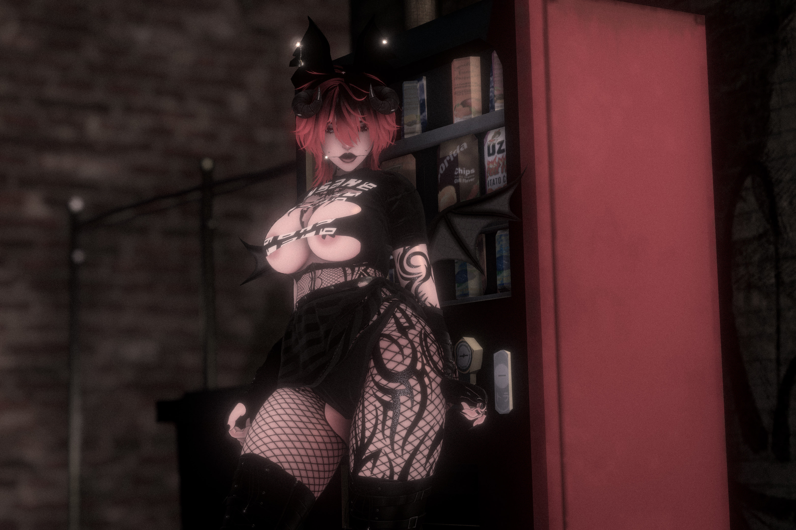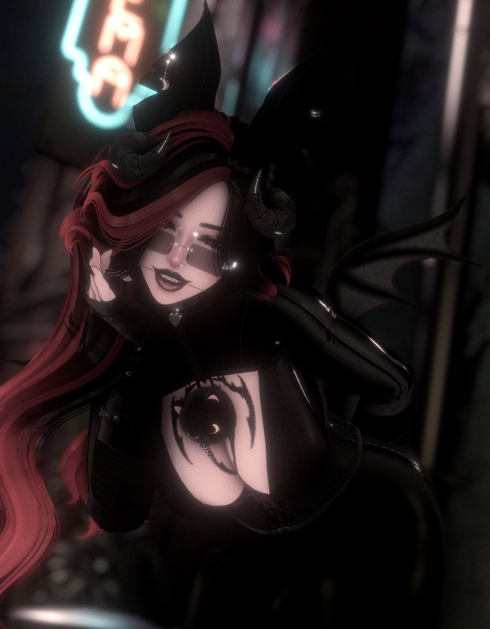 Missing on quest: mouth spike, glasses, gloves, and choker