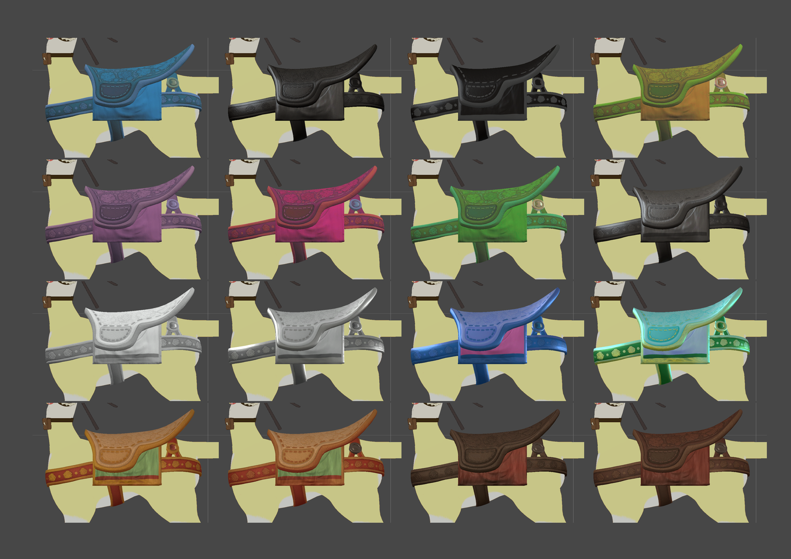 Available in several color variants of ranging from black and dark brown leather to shiny carousel horse!