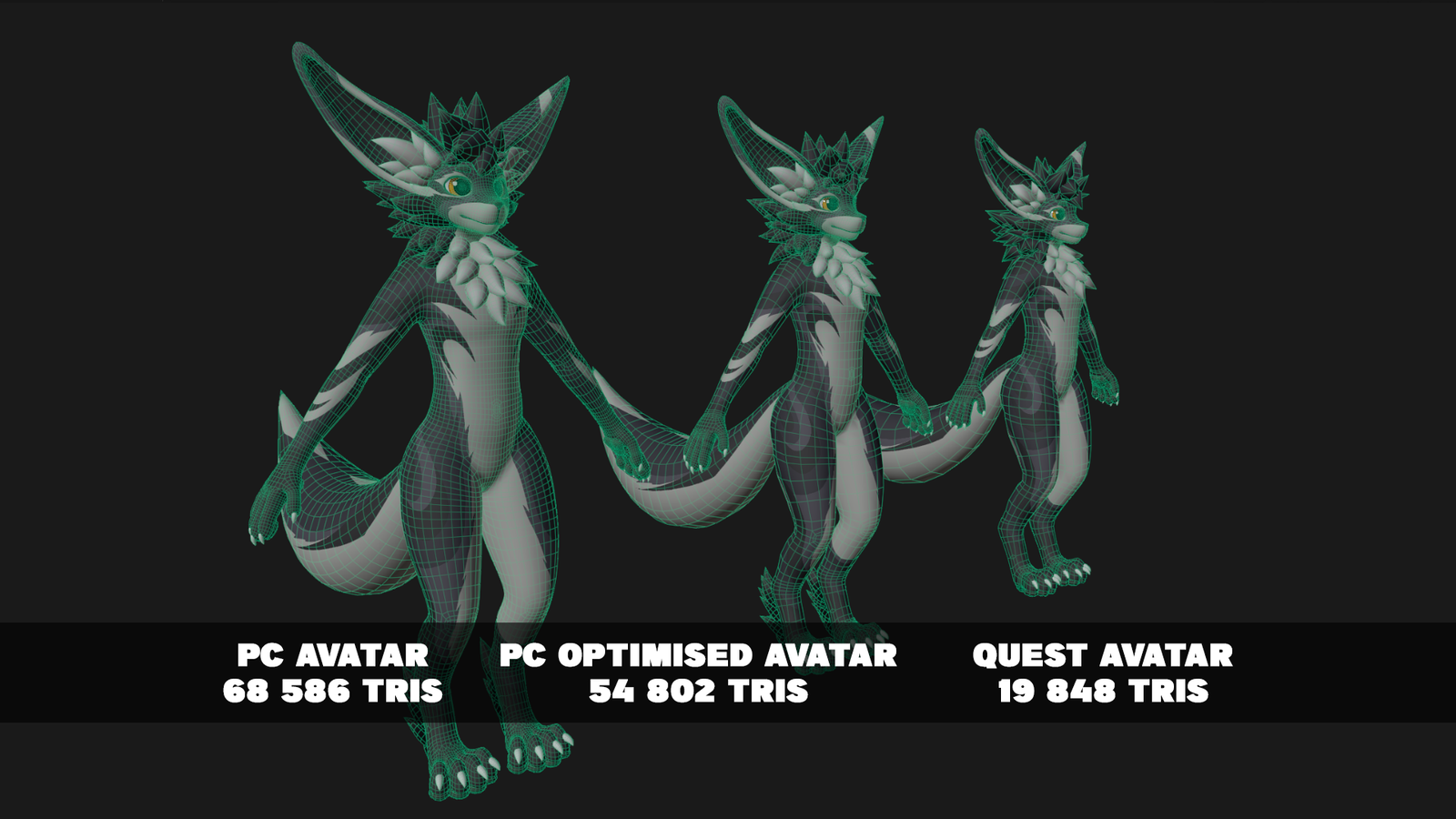 - (PC Avatar non optimised, default) ~ 68 586 Polys, 4 Materials, 129 Bones - Medium in VRC)