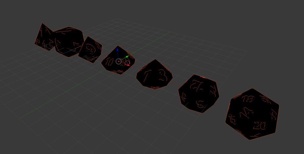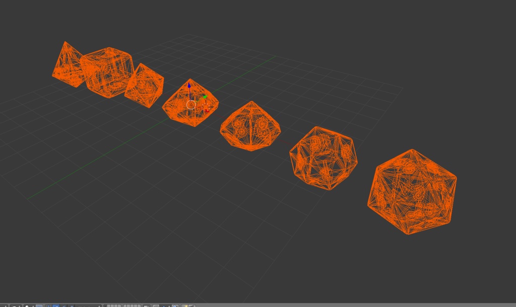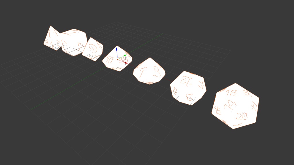 I’ve been playing a lot more Dungeons and Dragons recently, so I decided to make a dice set! For anyone who doesn’t play tabletop RPG’s this set contains a d4, a d6, a d8, a d10, a d12 and a d20.