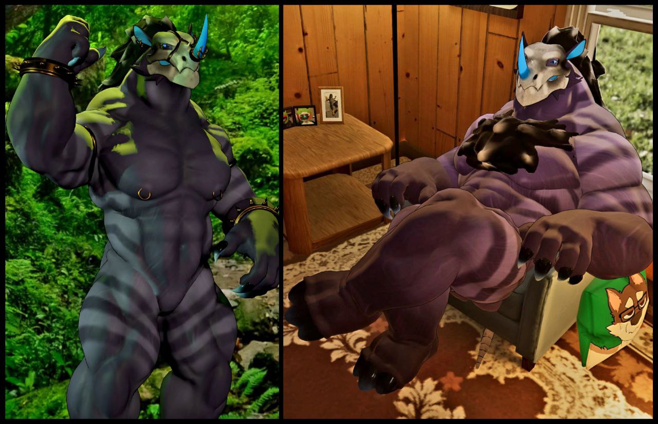 This Skull Rhino adorned in gold and is as ripped/Thikk as they come with his spooky skull face and flaming eyes. He also has the option for a more normal appearance as well if the skull is too much. Although more suited for the Halloween season he has Christmas attire for the current season.
