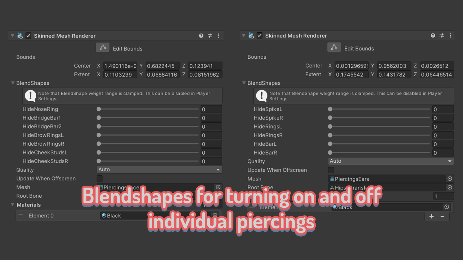 Multiple options for blendshapes to tune your taste in piercings to your liking!
