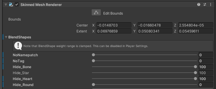 Match your CHIRP Collar's model blendshapes on the Skinned Mesh Renderer to the following: