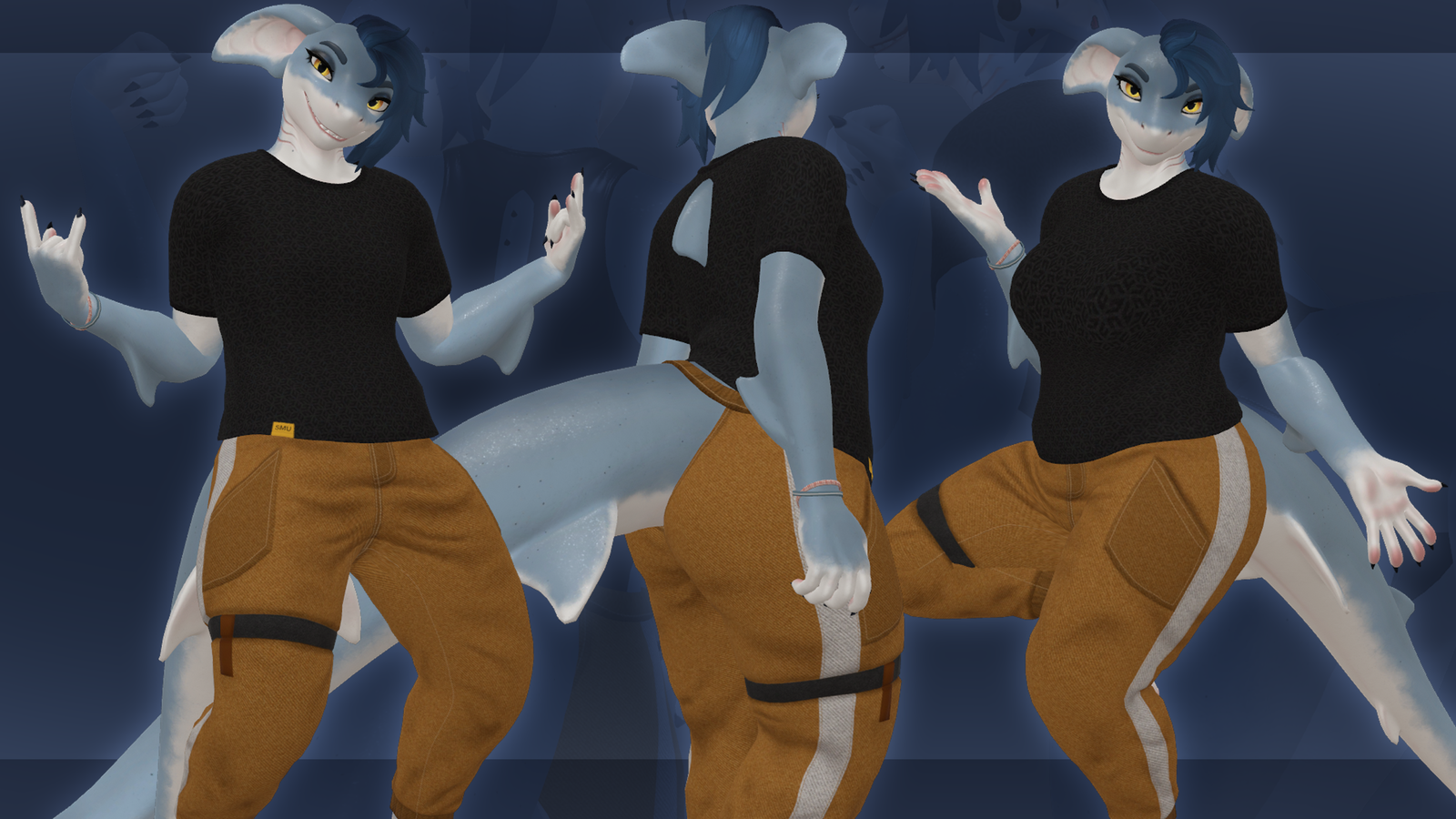 *I didn't set up the option to hide the dorsal fin for the T-shirt; if you want to do that, you'll need some basic knowledge of how to create a toggle.