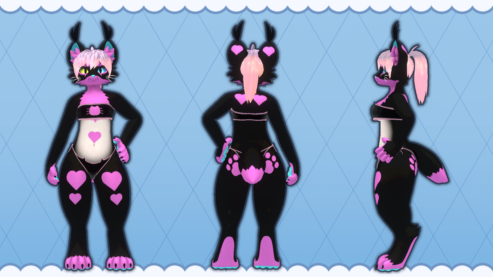 Featuring a striking black and neon-pink palette with the absolute cutest heart accents, this design is guaranteed to pop in any world. It is incredibly versatile—perfectly tailored so you can effortlessly switch it up and use it for either a fierce femboy vibe or a fabulous female look!