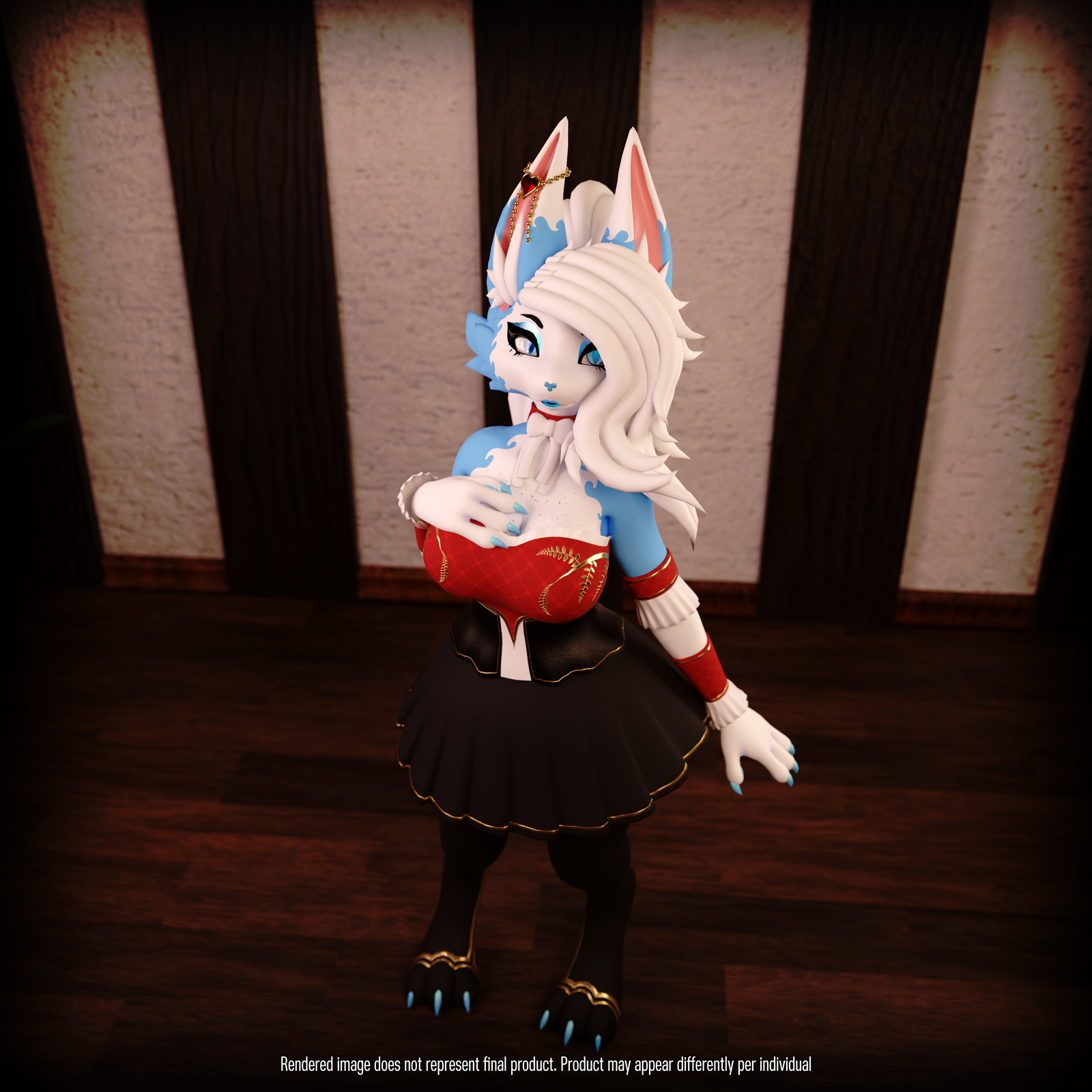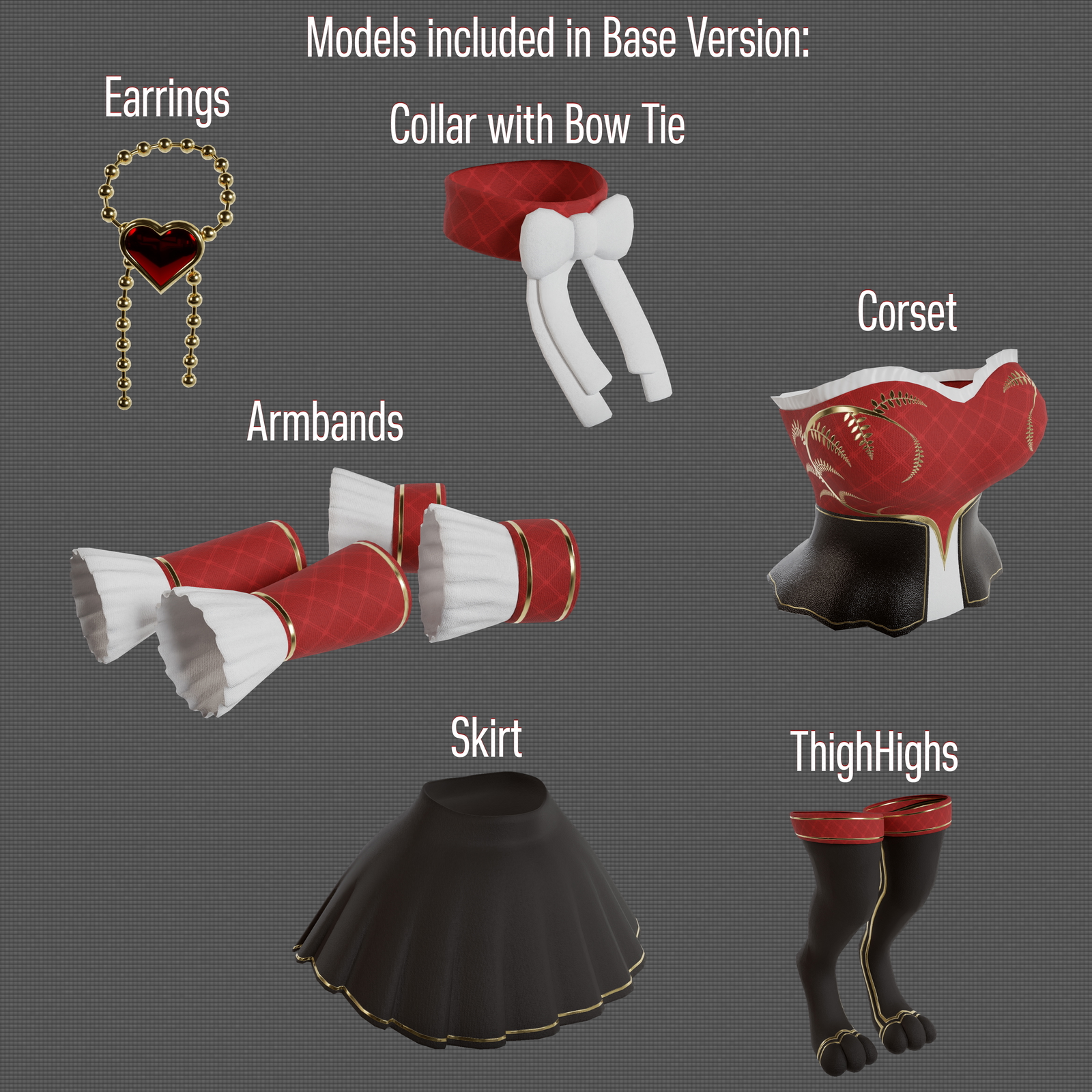 Objects included in asset: Earring, BowTie Collar, Armbands w/ Frills, Corset, Skirt, ThighHighs