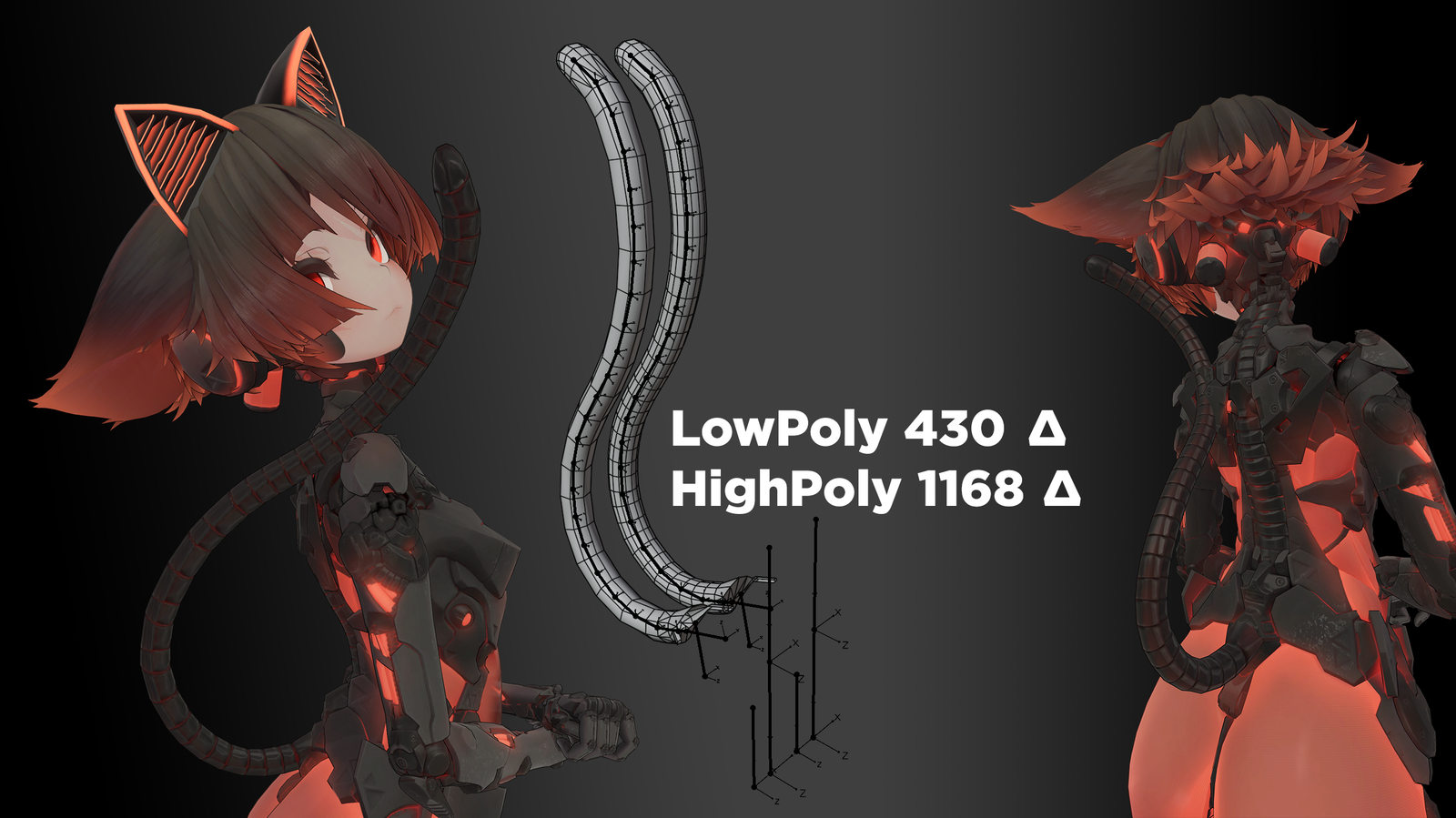 There are no colliders set up yet for the tail to collide with the ground or legs, this is something i look into adding.
