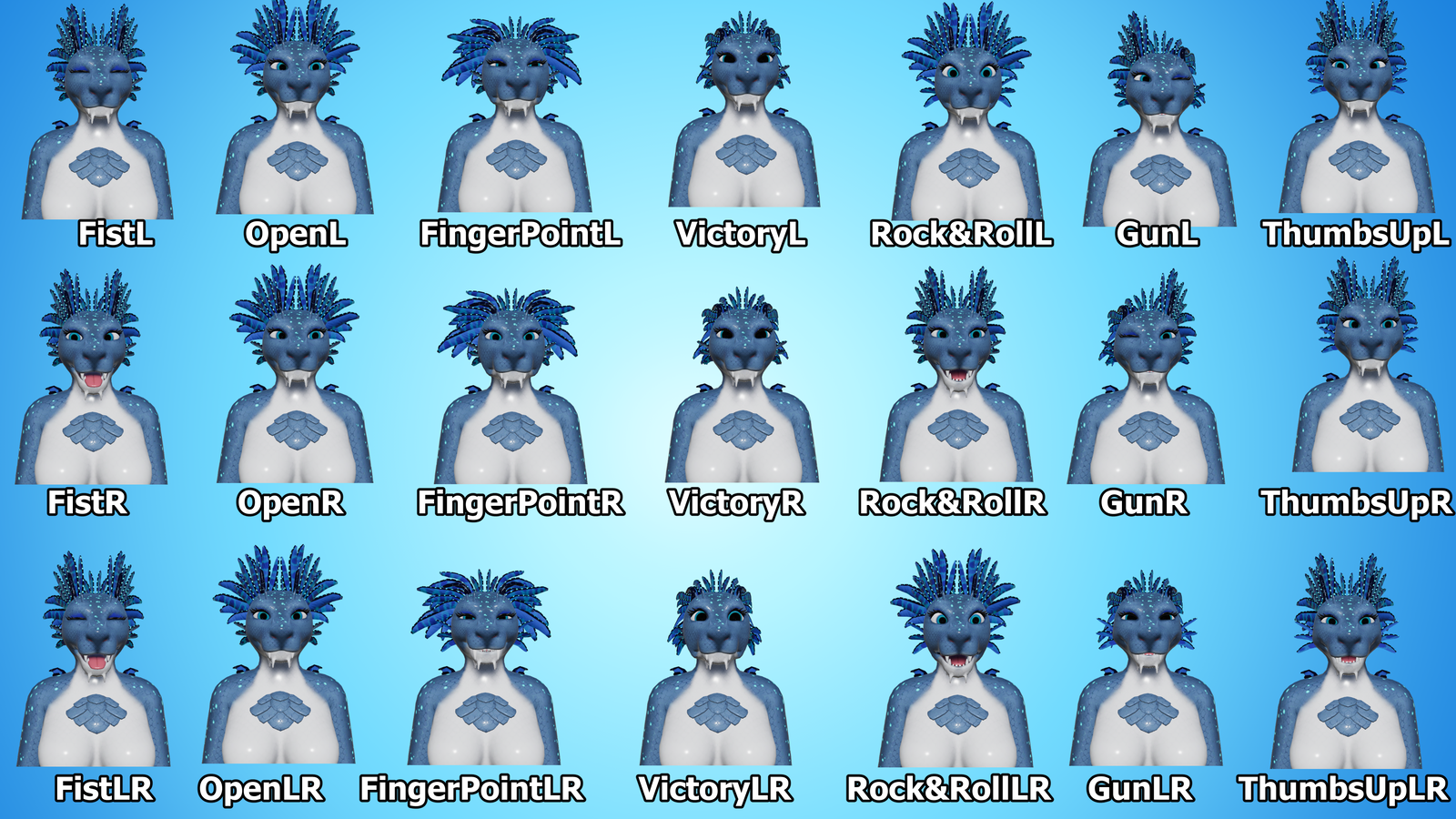 - Expression Menu Toggles - Happy, Sad, WinkL, WinkR, Squint, ClosedEyes, Fear, and Blep