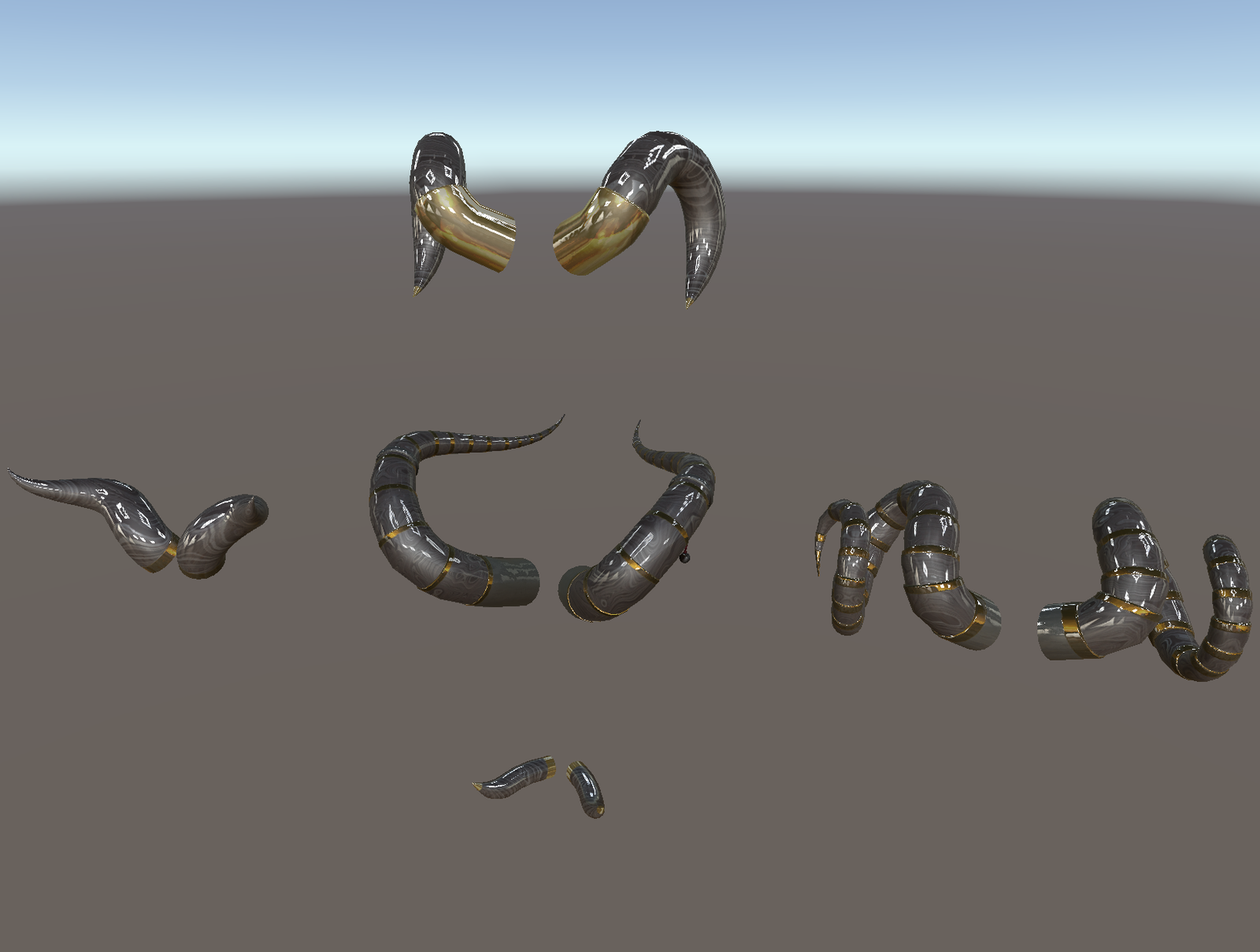 A horn set for any purpose. Comes with 5 different shapes, each of which have 4 different texture options.