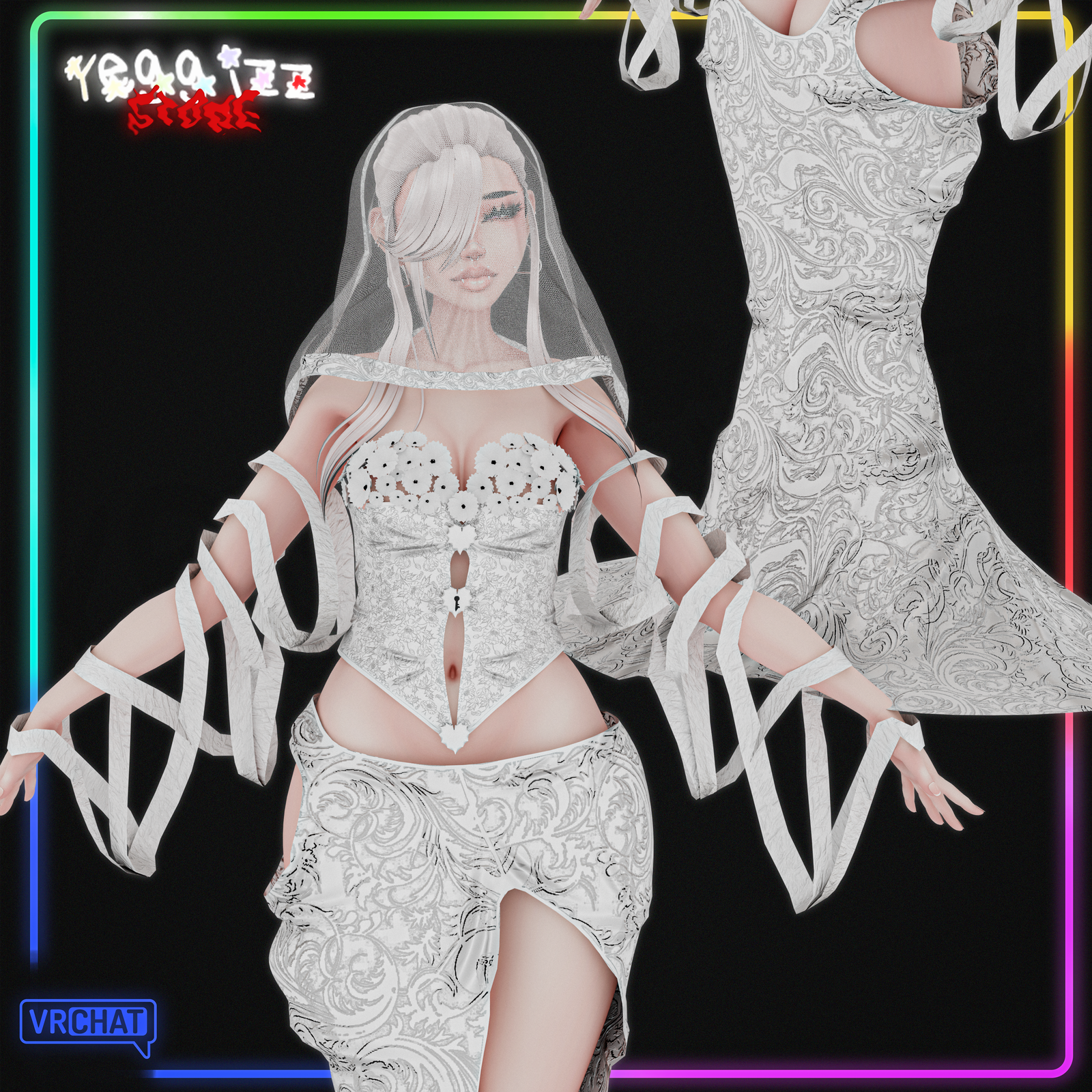 Comes with Corset, Bottom Dress, Arm Bands and Veil