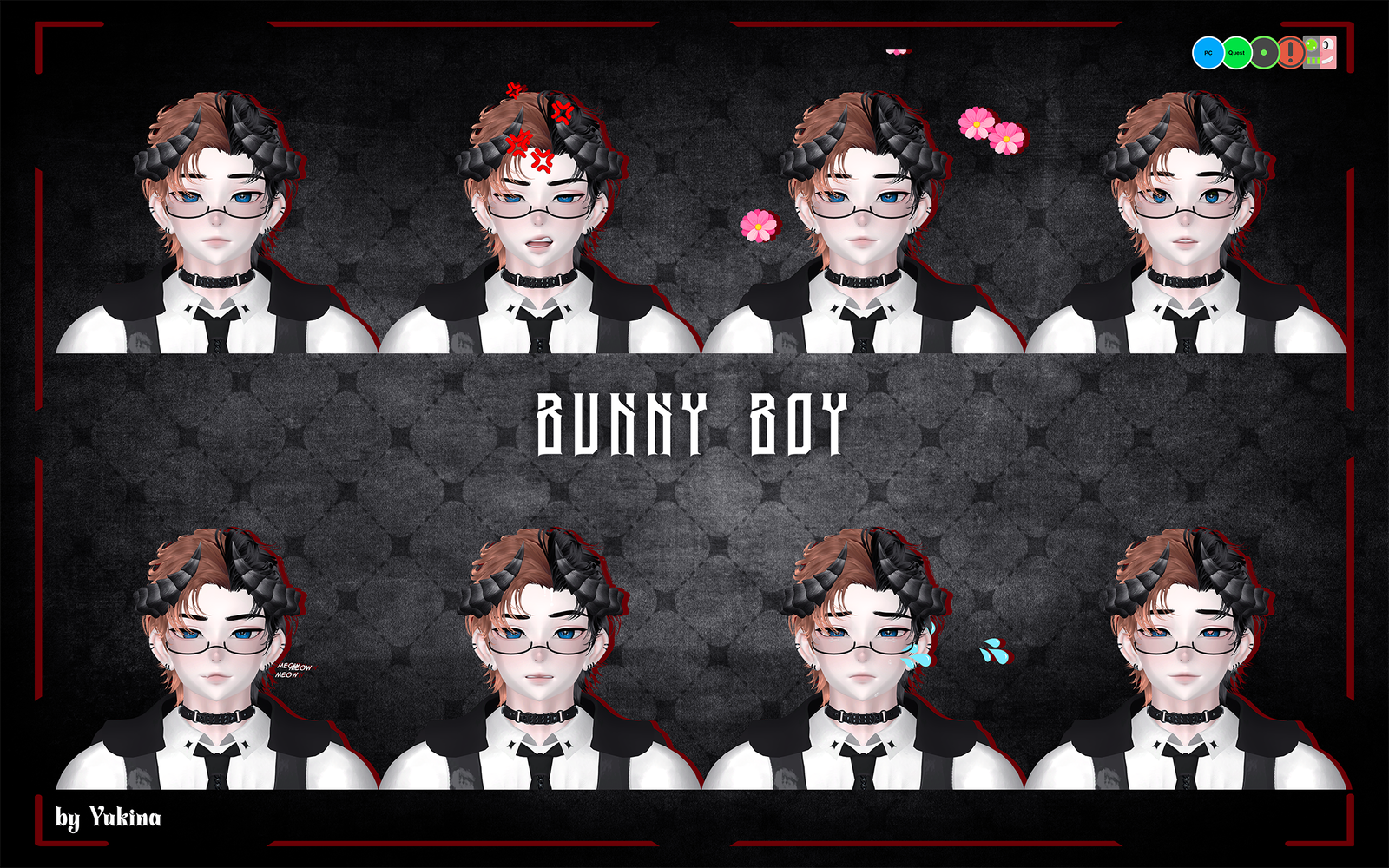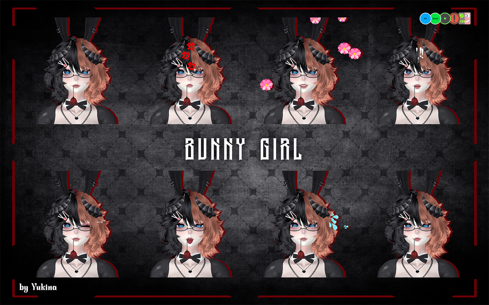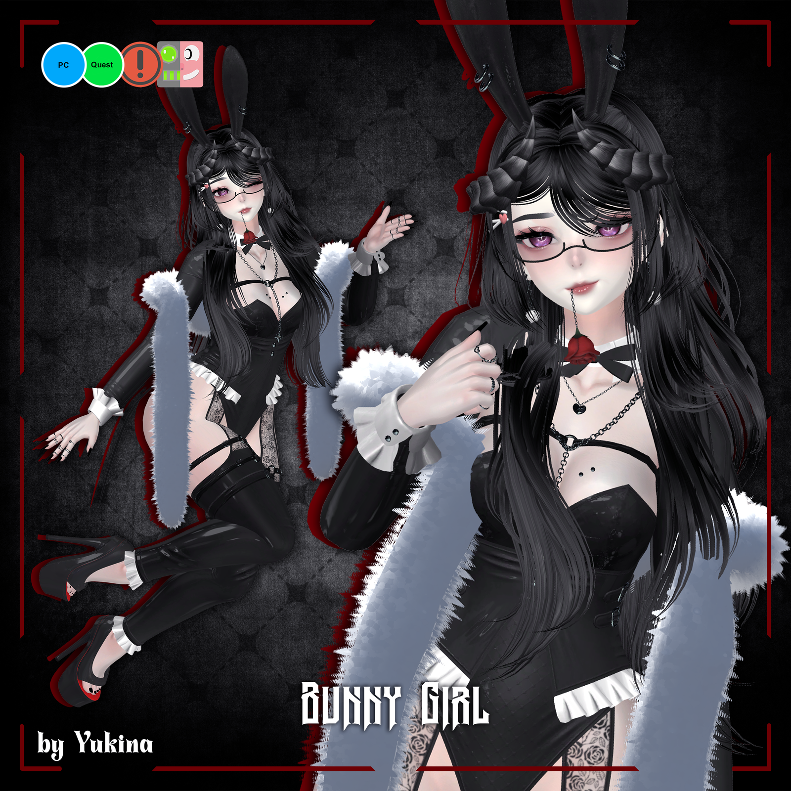 - Horns, Bunny Ears, Bunny Tail, XBunny, Glasses, Earrings, Rings, Harness, Piercings, Bracelet, Necklace, Long Necklace, Gloves, Choker, Rose, Rose Flow, Particles: Yukina