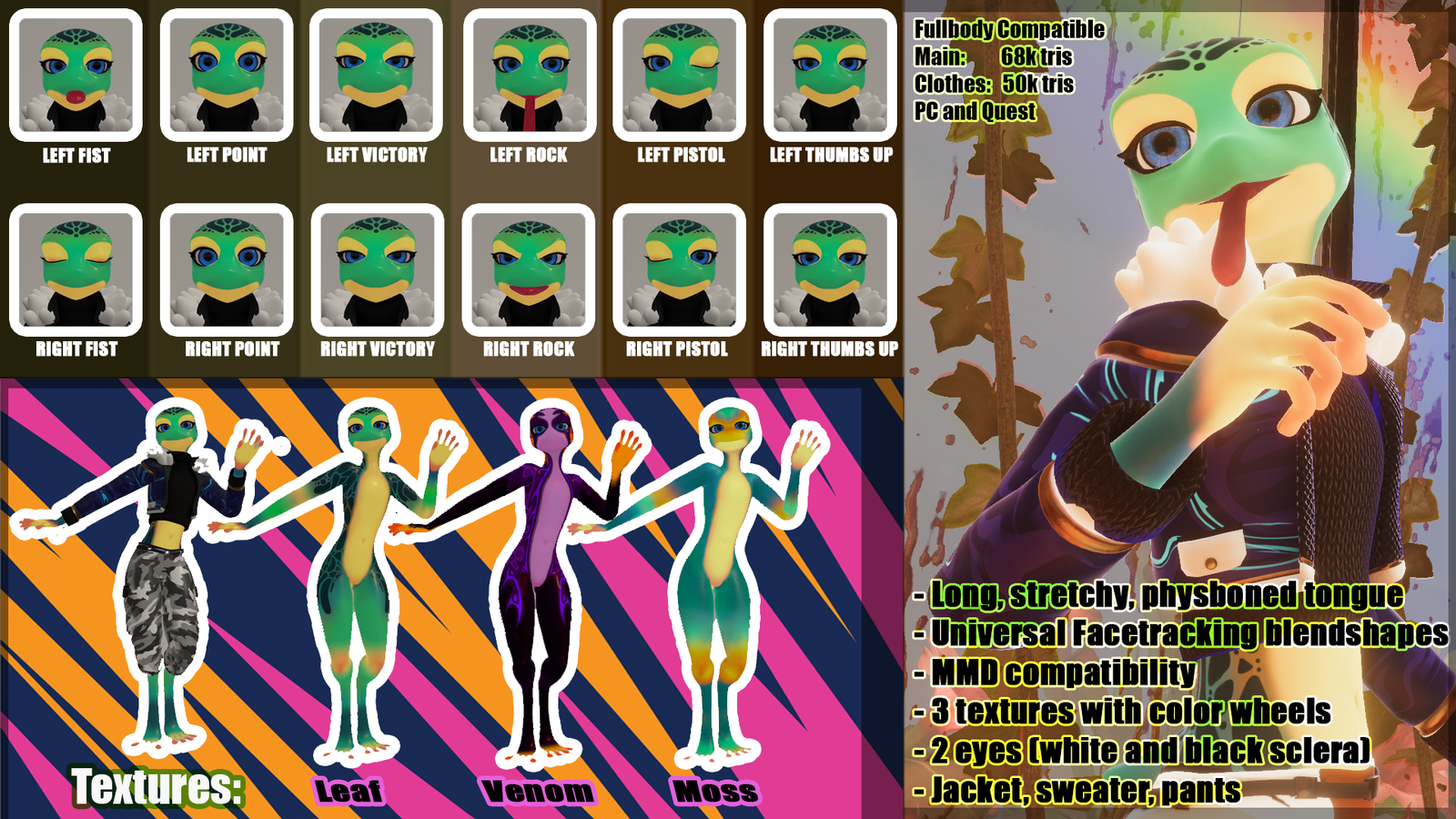 It's a frog! (I'm not very good at descriptions). Please try it out and buy it if you like it, a lot of work has gone into this one! It has facetracking and all kinds of nice features. See the images provided for more info.