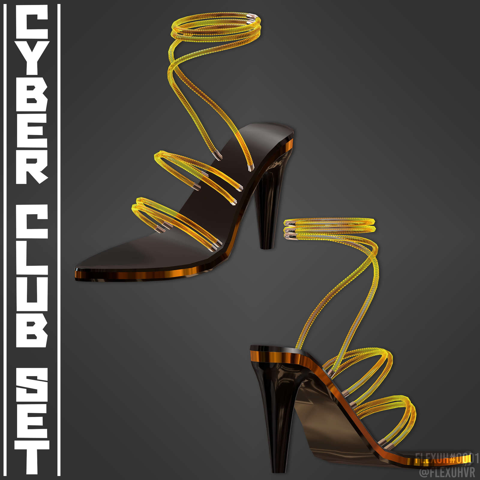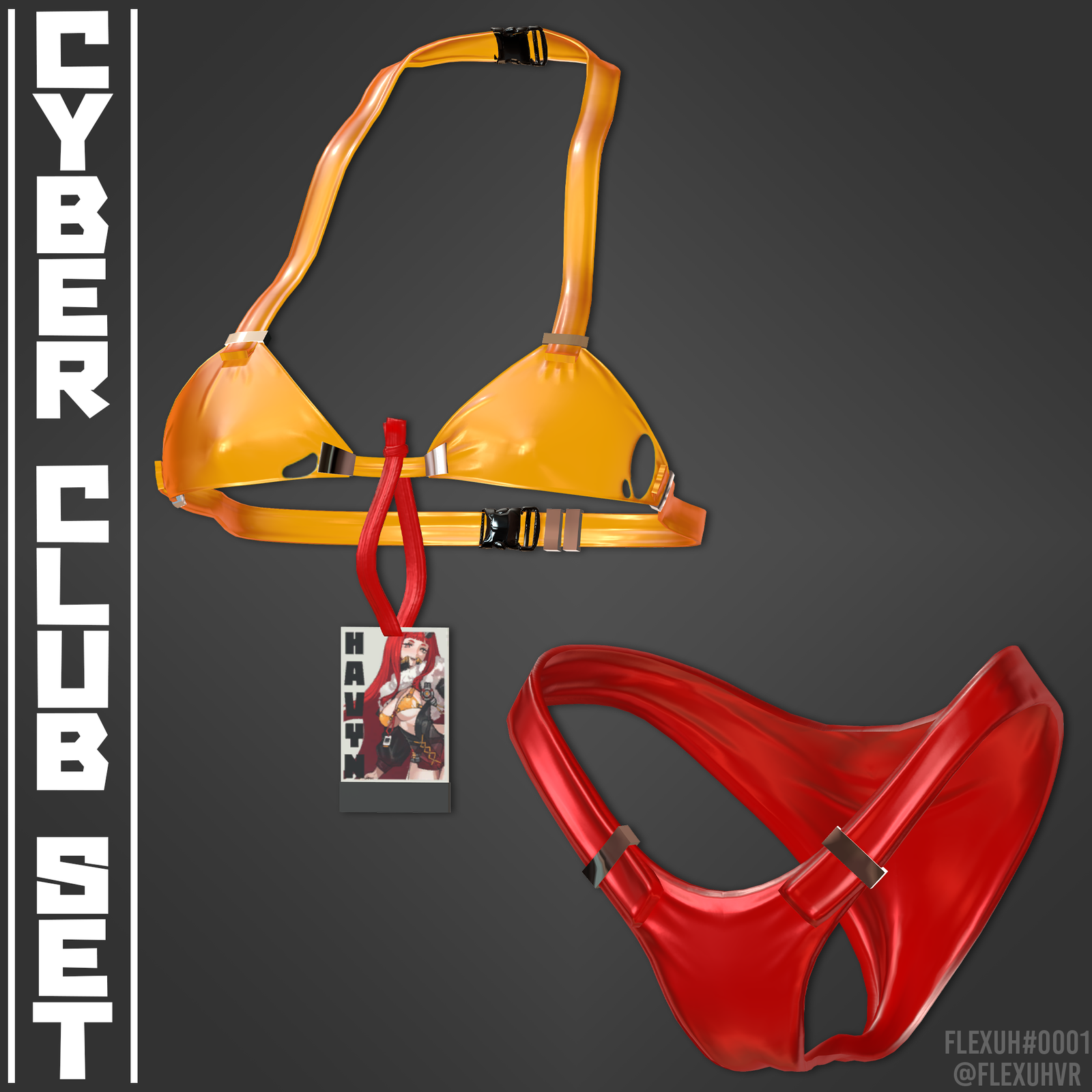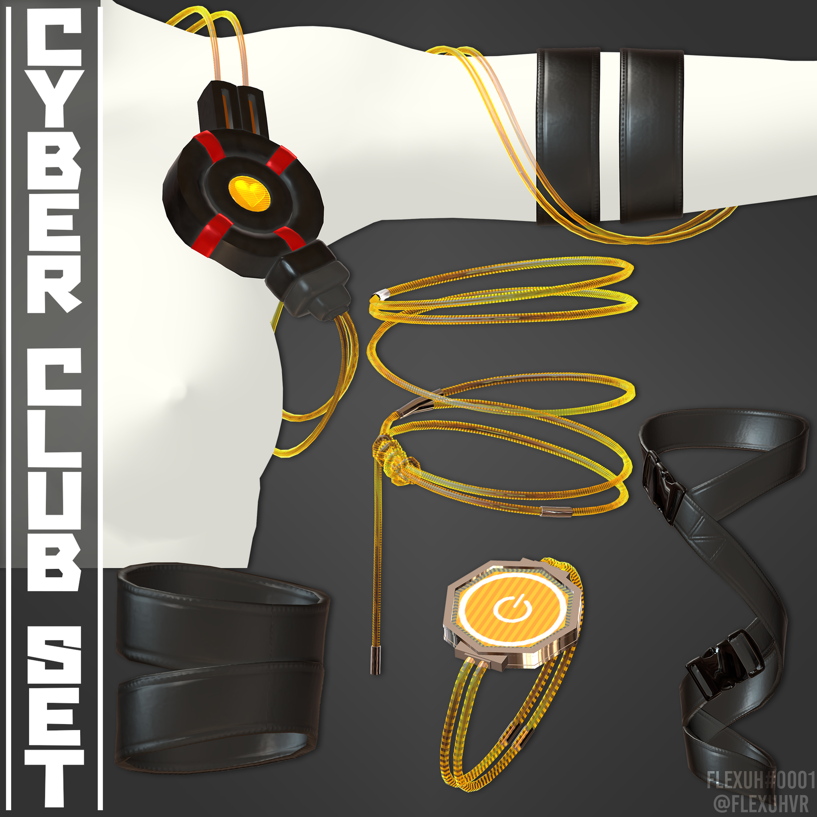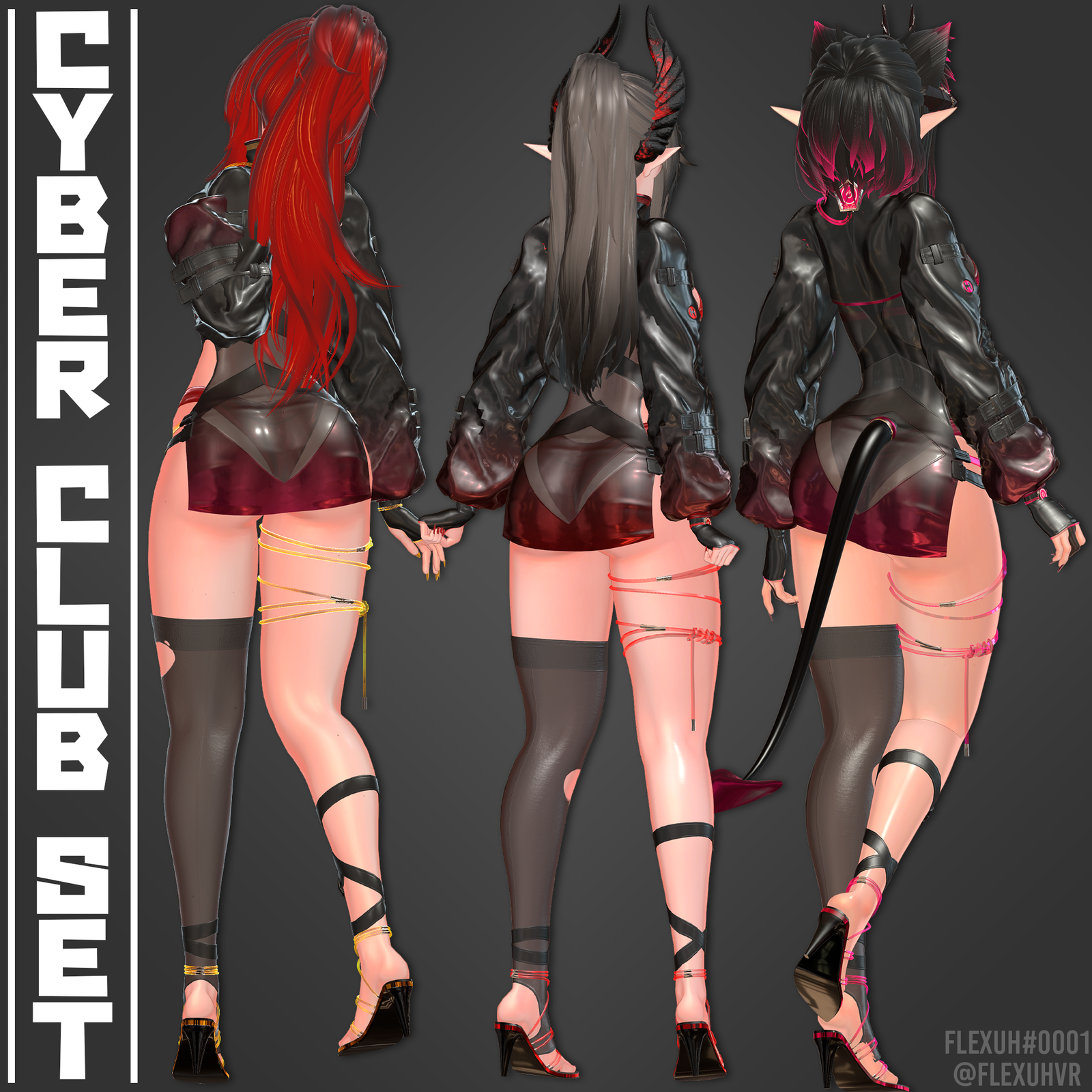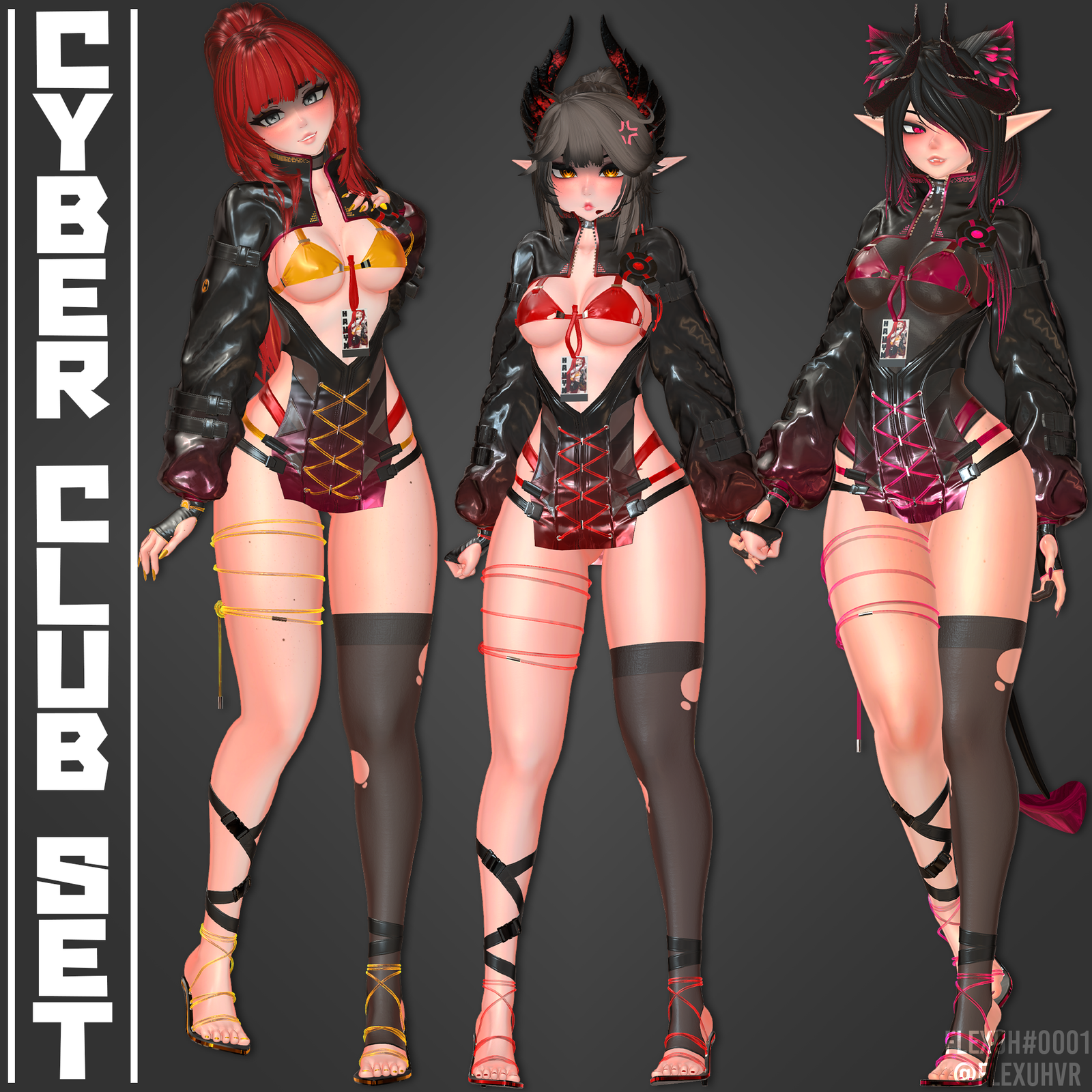 This set includes a jacket, dress, sleeves, thighhigh, thigh/ankle straps, heels, bra, panties and Cyberpunk Heart Monitor.