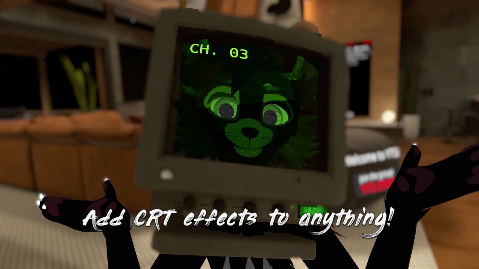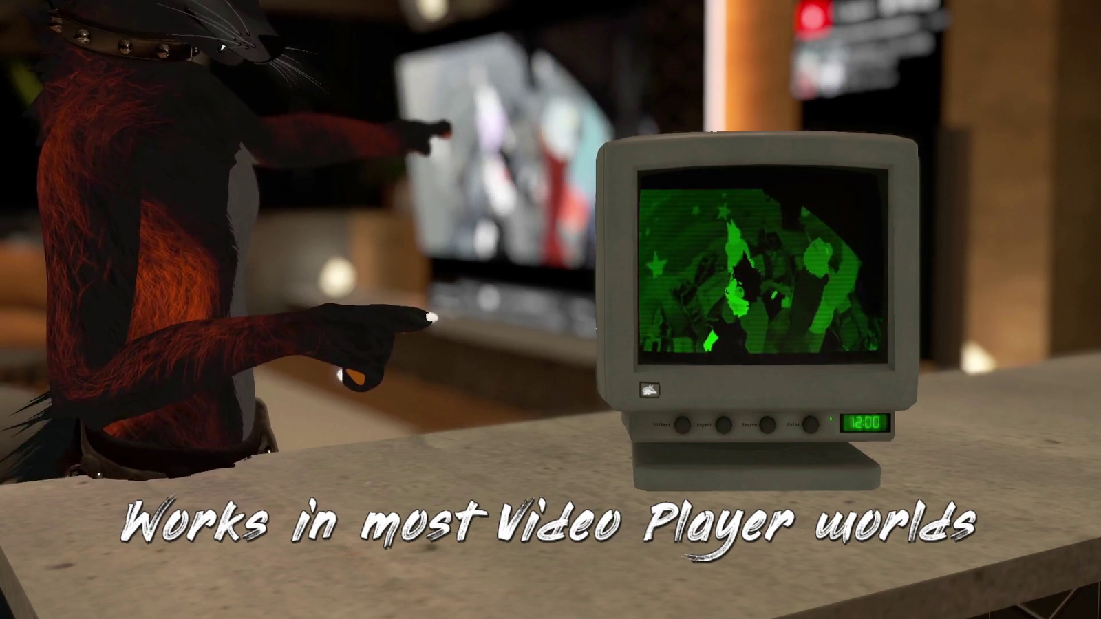 With these features you can make a wide variety of assets and effects. For example, a Pip-Boy-like minimap on your wrist, a little CRT that displays closed captions via an OSC app, a world-droppable video player, a realistic arcade cabinet, a 70s TV with rabbit ears you have to adjust to improve the signal-to-noise, a radar screen with a sweeping line, a Protogen with a retro mask, Max Headroom, your own avatar with a CRT for a head...this is just from a minute of brainstorming! Trust me, if I had time I'd make all of these!