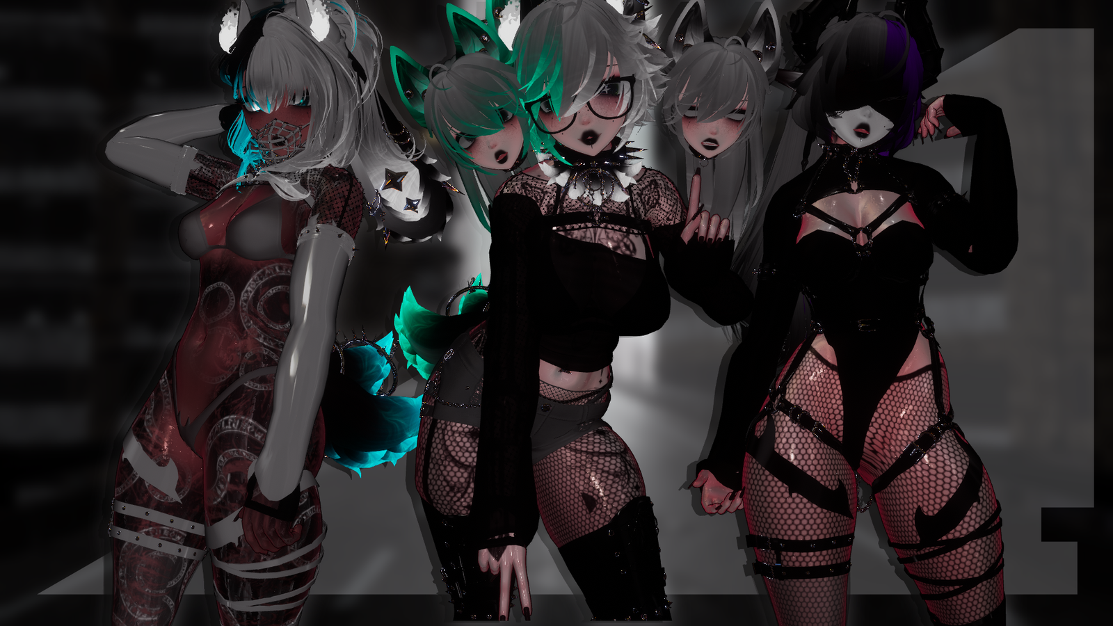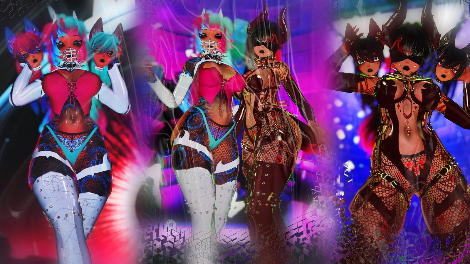 ᯓ★ Bodysuit 1 + Latex Arms, Bodysuit 2, Pants, Dog Ears/Tails, Bunny Ears/Tails, Big Horns, Front Bangs 1, Collar, Goth Makeup Swap by ME !