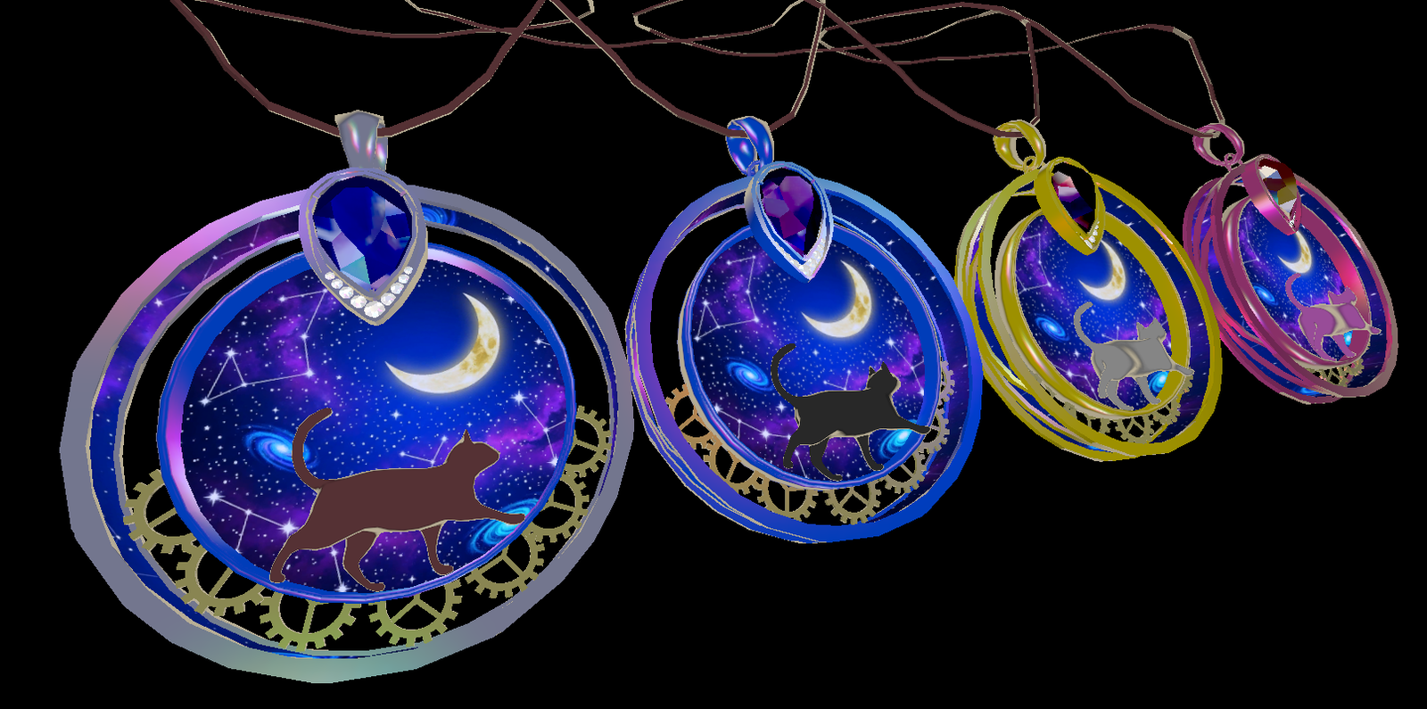 【VRChat】Night Sky Cat Accessory Collection - Necklace, Earrings & World Clock