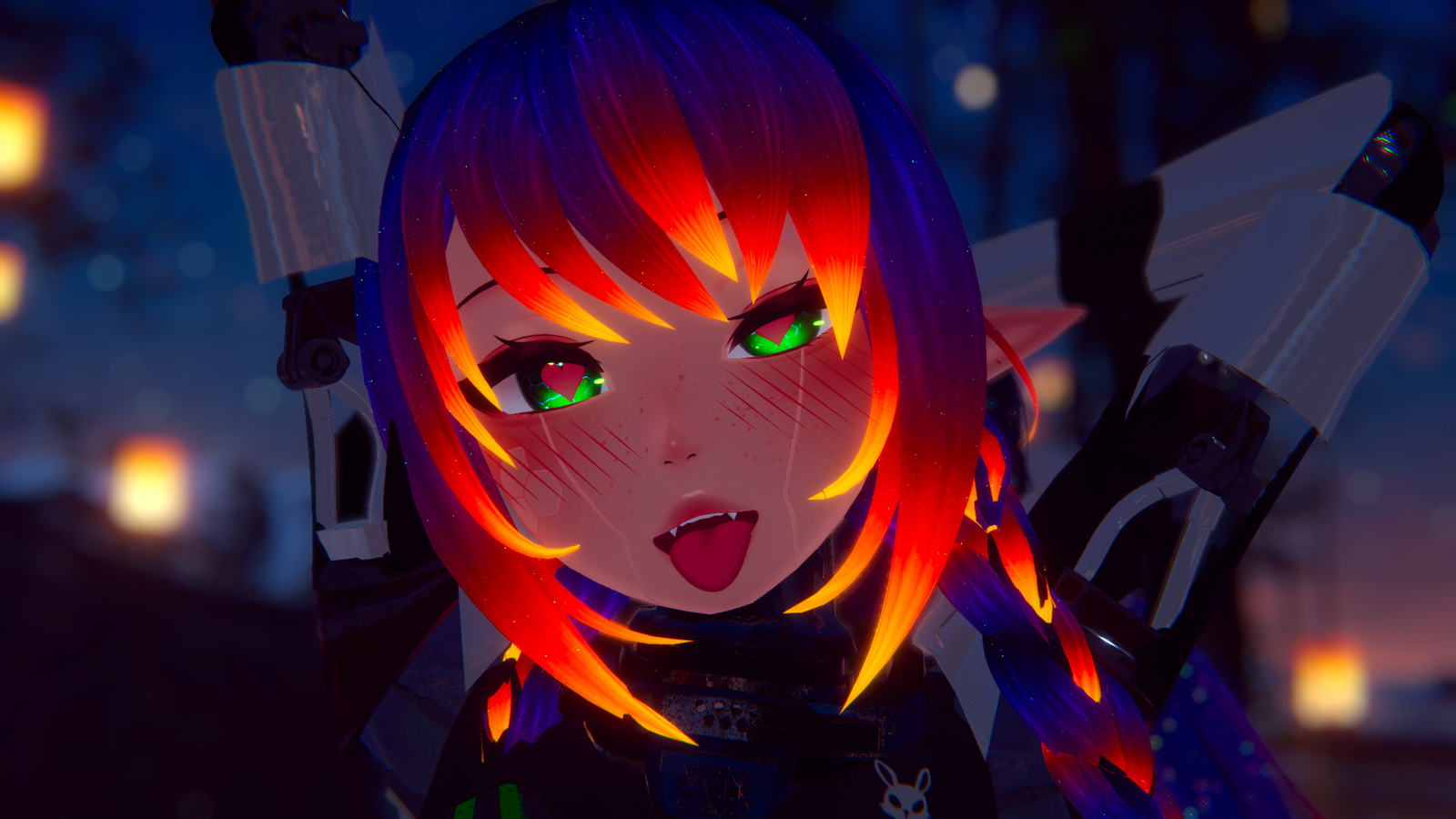 ✨ Features • Full Avatar 3.0 + OSC support • GoGo Loco Beyond (extended legs + flight/hover) • Color toggles: Hair, Eyes, Decals/Mats • Physbones: Hair braid, ears, chest, hips • Facial expressions + visemes (ARKit compatible)