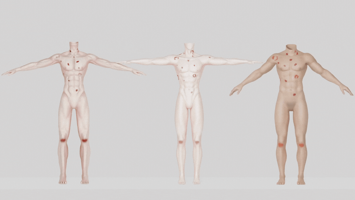 - High detail skin damage marks