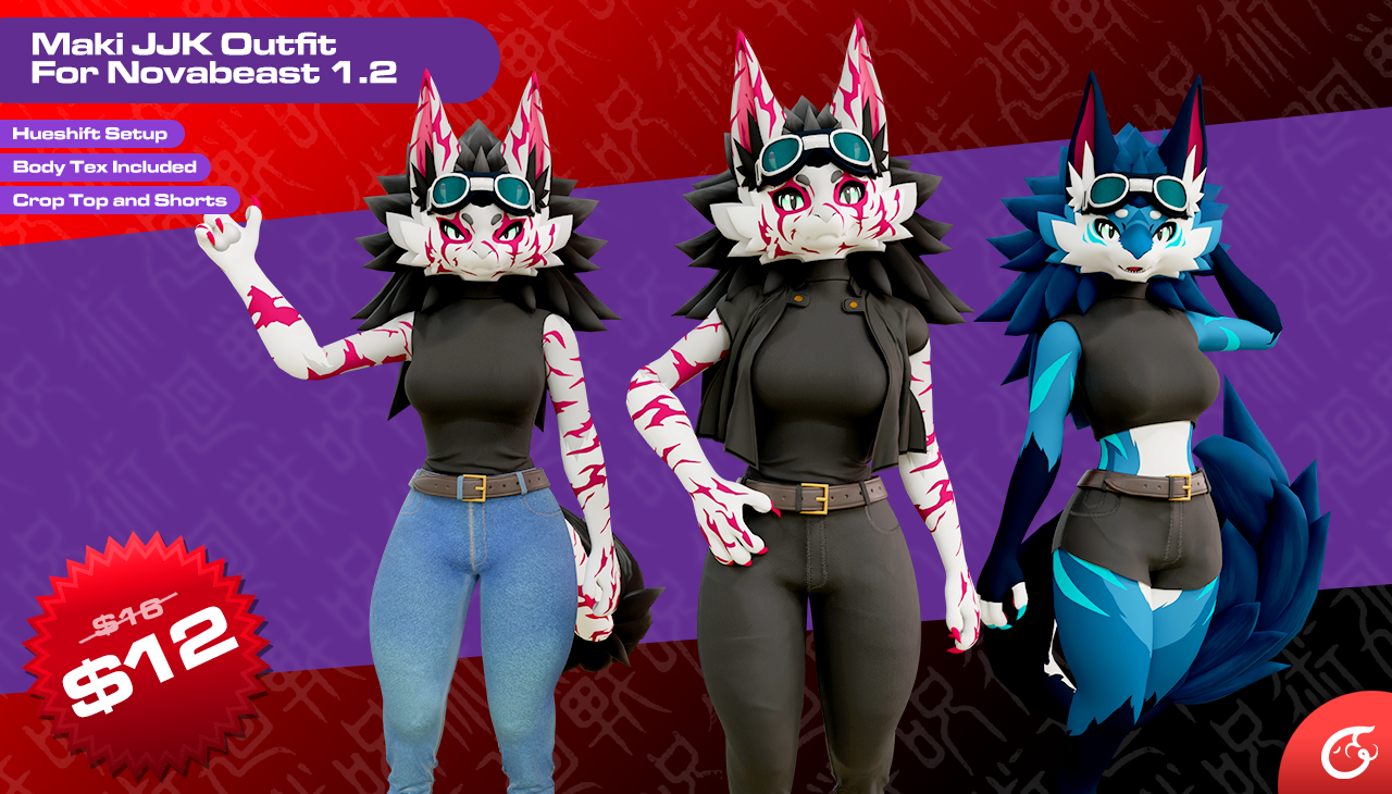 Outfit Made for the Novabeast, Been watching JJK for a while now and Maki WAS FIREEEEE!! after the Uko Outfit i did for free lot of people suggested a Maki outfit here it is. even though this outfit includes the maki skin, if you guys just want the maki scar skin it can be bought serperately for $2 at - https://jinxxy.com/Dia3d/MakiNovaSkin