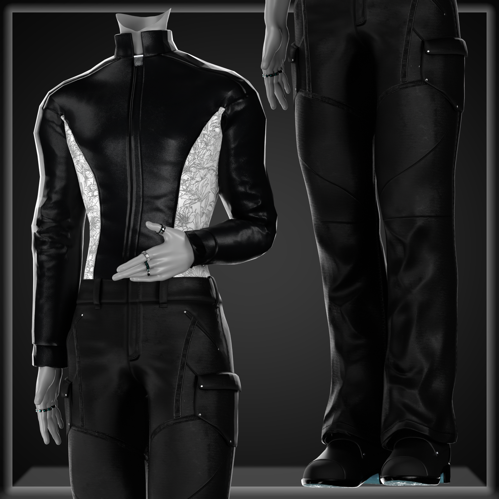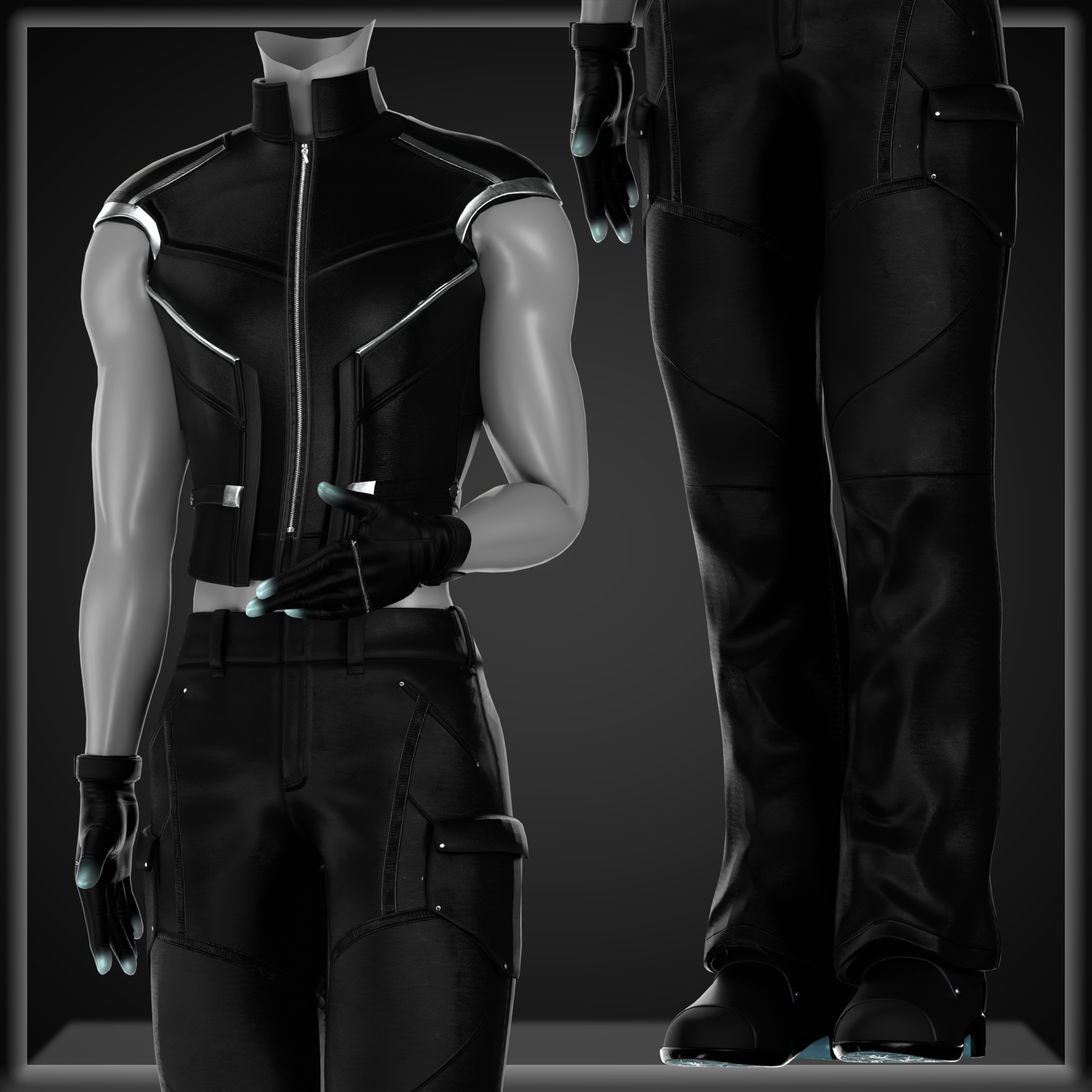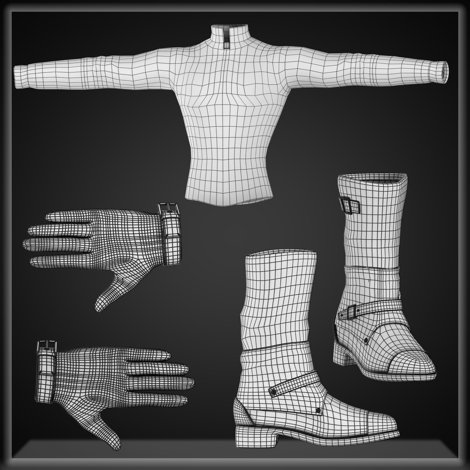Long Coat, Longsleeve, Vest, Pants, Boots, Gloves and Rings.