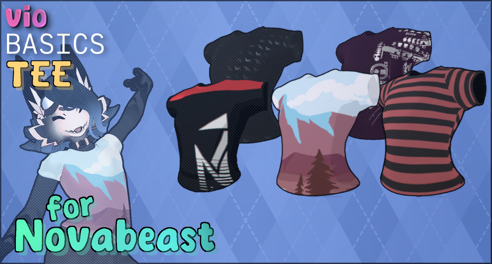 A basic, crewneck short-sleeve t-shirt, fit to Novabeast. Features a handful of designs to pick from, and an easy UV map to create your own!